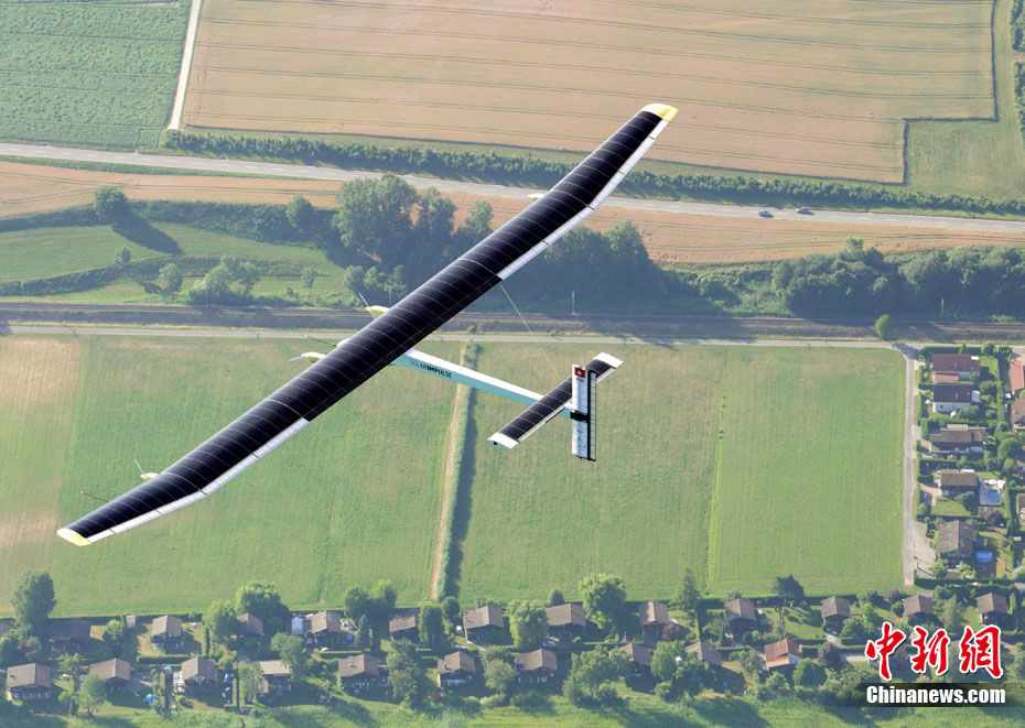 7月8日,太陽能飛機(jī)“太陽驅(qū)動(dòng)”在空中飛行。世界最大太陽能飛機(jī)——瑞士制造的“太陽驅(qū)動(dòng)”飛行26小時(shí)后,于當(dāng)?shù)貢r(shí)間8日9時(shí)在瑞士帕耶那機(jī)場(chǎng)降落,成功完成首次晝夜試飛。這是世界上首次進(jìn)行太陽能飛機(jī)的夜間試飛。