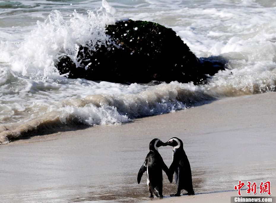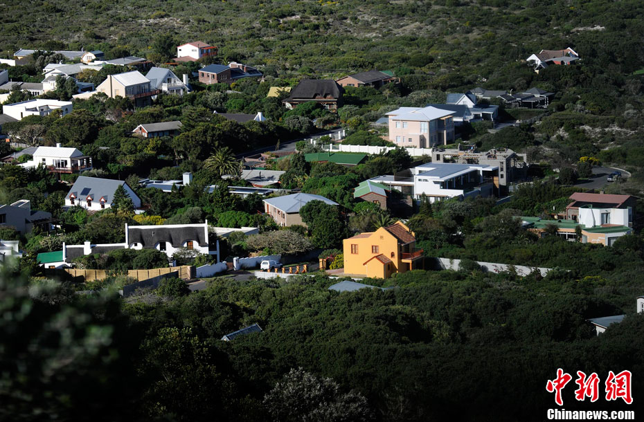 南非開(kāi)普敦西蒙小鎮(zhèn)和生長(zhǎng)在這里的企鵝。中新社記者 廖攀 攝