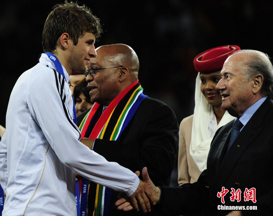 北京時間7月11日凌晨2:30,南非世界杯進(jìn)行了三四名決賽的爭奪戰(zhàn),由烏拉圭在伊麗莎白港的納爾遜·曼德拉海灣球場迎戰(zhàn)德國隊(duì)。最終在一場進(jìn)球大戰(zhàn)中,德國隊(duì)?wèi){借第82分鐘赫迪拉的進(jìn)球一錘定音,以3-2險勝對手,獲得南非世界杯第三名。