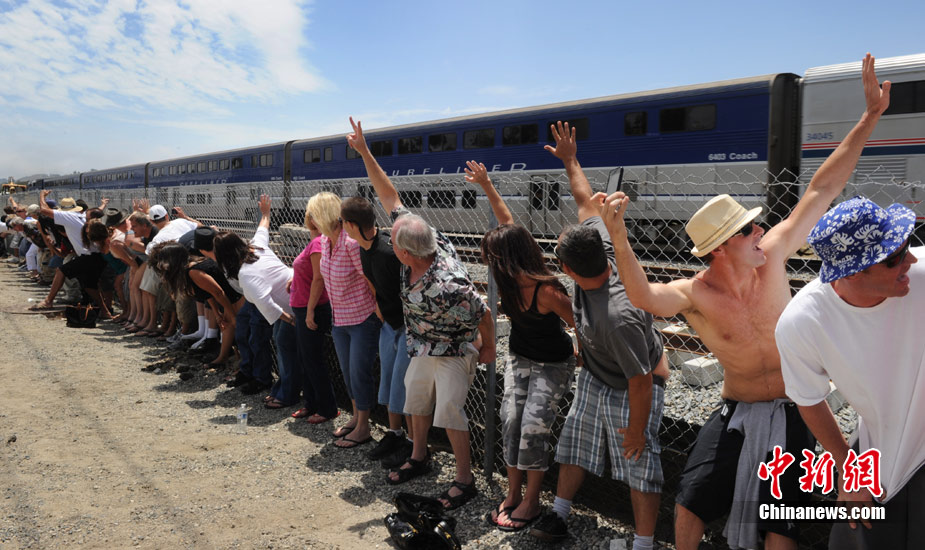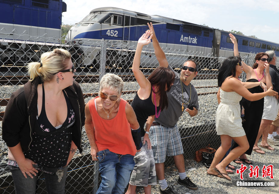 近日,美國(guó)加州南部一城市上萬(wàn)人在火車(chē)鐵軌沿線(xiàn)站成排,背對(duì)著經(jīng)過(guò)的火車(chē),脫褲子露出屁股。據(jù)悉,這是當(dāng)?shù)匾荒暌欢鹊奶厣?huì)。