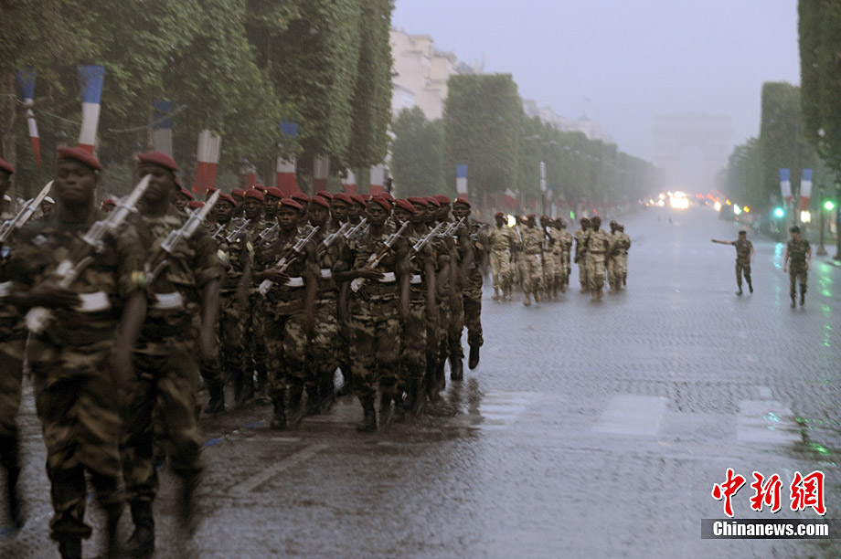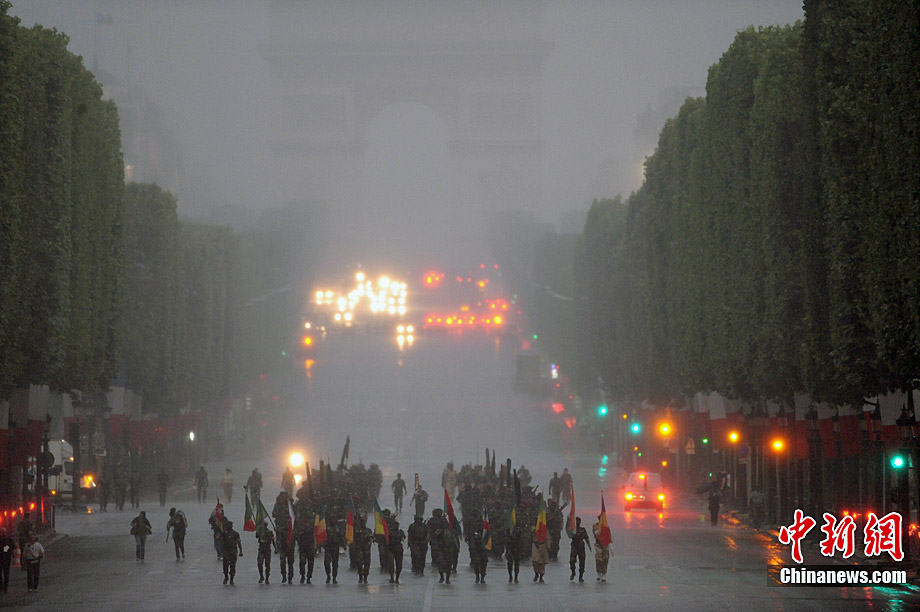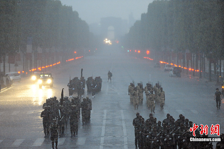 7月12日,法國(guó)巴黎的香榭舍大街上,來自13個(gè)非洲國(guó)家和法國(guó)軍隊(duì)的士兵冒雨進(jìn)行了國(guó)慶日閱兵式彩排。7月14日是法國(guó)國(guó)慶日。1789年的這一天,巴黎人民攻占了象征封建統(tǒng)治的巴士底獄,推翻了君主政權(quán)。1880年,7月14日被正式確立為法國(guó)的國(guó)慶日,法國(guó)人每年都要隆重紀(jì)念這個(gè)象征自由和革命的日子。