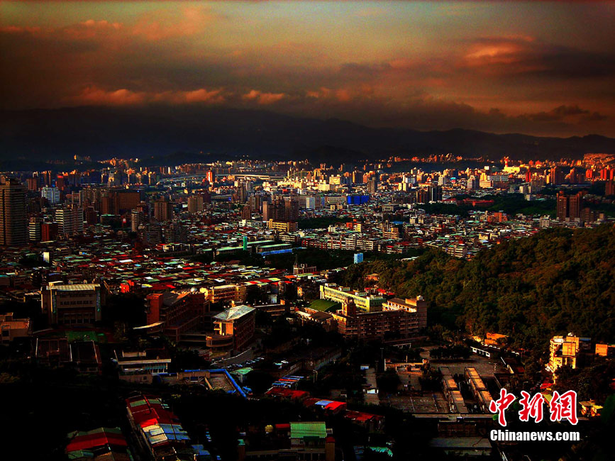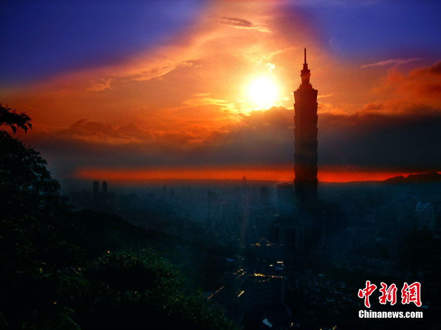 7月15日傍晚,臺(tái)北市一陣電閃雷鳴過后,太空霞光四射,從象山俯瞰市區(qū),101摩天大樓聳入云霄,景觀如畫。美麗的臺(tái)北市地處盆地,氣候多變,夏季的城市景色也時(shí)常變幻莫測。中新社記者 宋吉河 攝