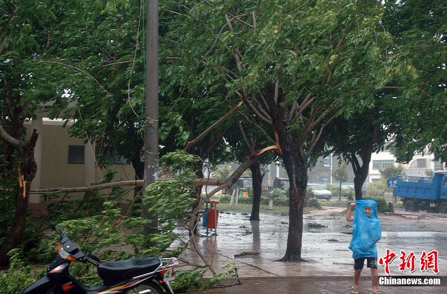 今年第2號(hào)臺(tái)風(fēng)“康森”7月16日傍晚在海南三亞市登陸,處于東部沿海地區(qū)的瓊海市刮起6、7級(jí)大風(fēng)。中新社發(fā) 尹海明 攝