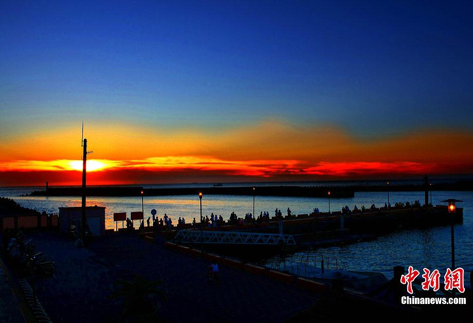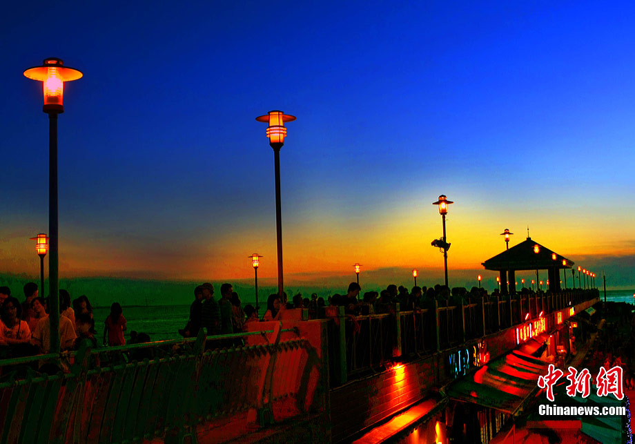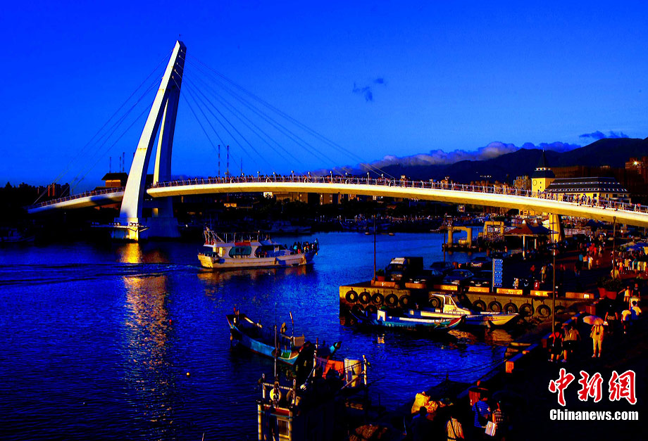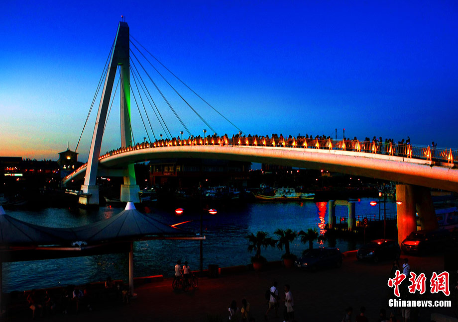 進(jìn)入7月中下旬的臺(tái)灣淡水漁人碼頭,游人如織,黃昏時(shí)下,晚霞照碼頭,漁船燈火明,景色迷人。據(jù)悉,淡水漁人碼頭,之前為淡水第二漁港,情人橋完工后,完善成為觀光休閑碼頭。中新社記者 宋吉河 攝