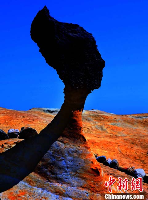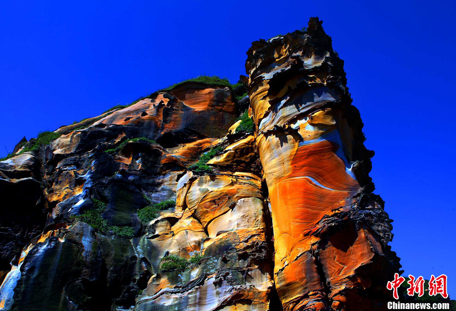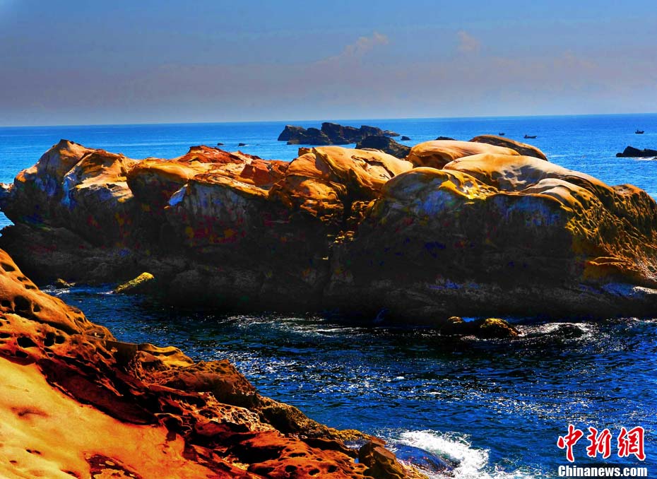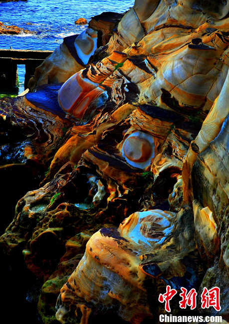 進入7月中下旬的臺灣野柳地質(zhì)公園旅游區(qū)游人大增,觀光客游趣濃厚的野柳地質(zhì)公園是一處突出海面的岬角,受海浪侵蝕、巖石風(fēng)化等作用,形成蜂窩巖、菌狀巖、姜狀巖、臘燭臺等各種各樣的奇特景觀。中新社記者 宋吉河 攝