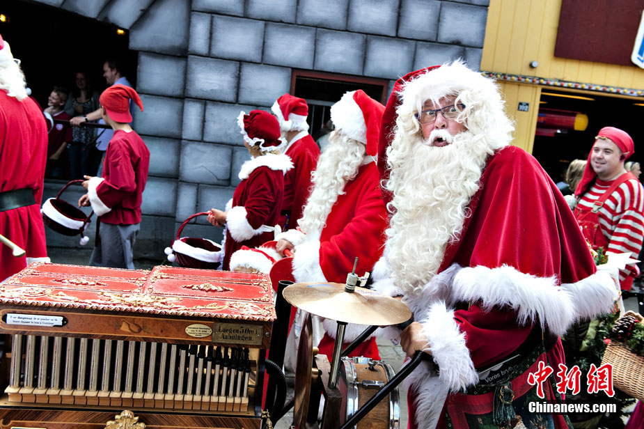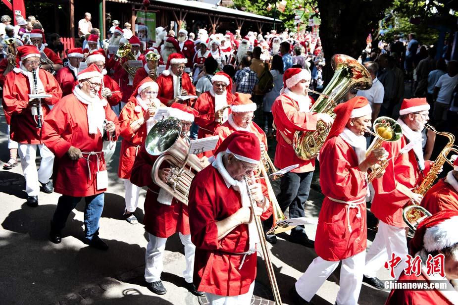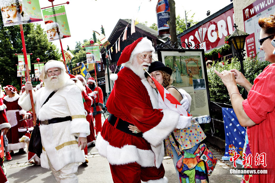 7月19日,丹麥?zhǔn)锥几绫竟,來自世界各地的圣誕老人舉行游行,慶祝一年一度的世界圣誕老人大會。當(dāng)天,120多名來自世界各地的圣誕老人齊聚哥本哈根。