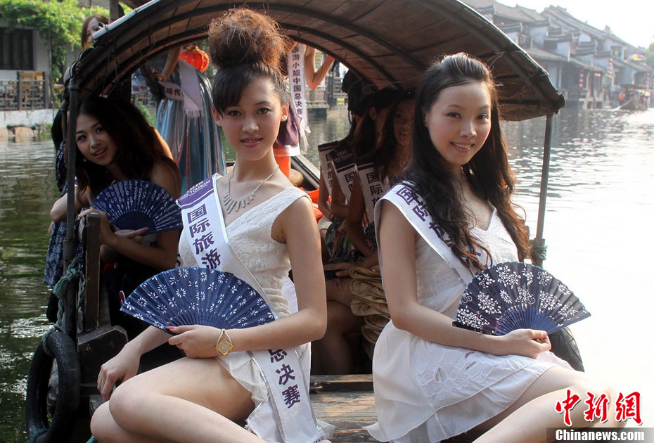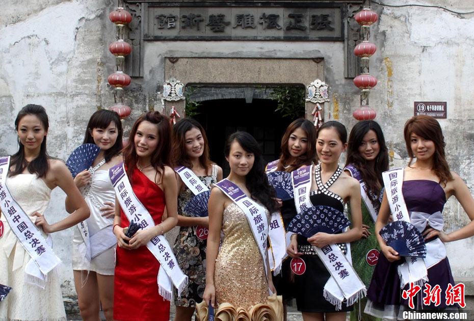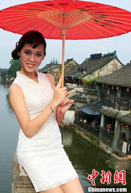 7月20日,正在浙江參加2010年國際旅游小姐中國區(qū)總決賽的34位佳麗來到西塘古鎮(zhèn)拍攝外景。此次賽事采取六輪淘汰賽形式進(jìn)行冠亞季選拔,并以欄目采取真人秀形式立體展示國旅及合作景區(qū)風(fēng)采。圖為參賽佳麗身著旗袍展示風(fēng)采。中新社發(fā) 錢興強(qiáng) 攝