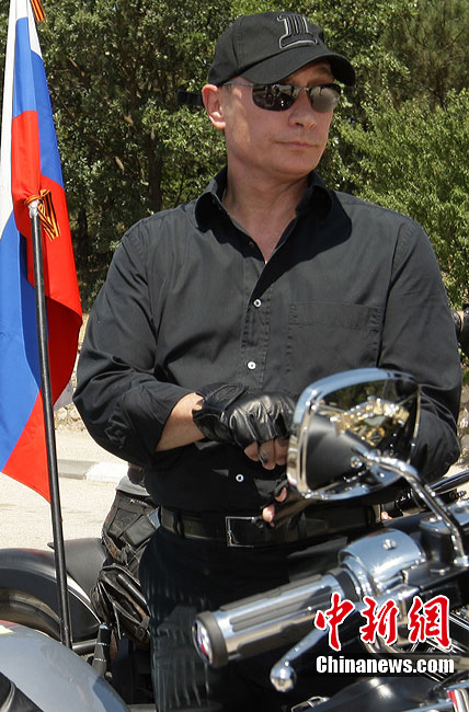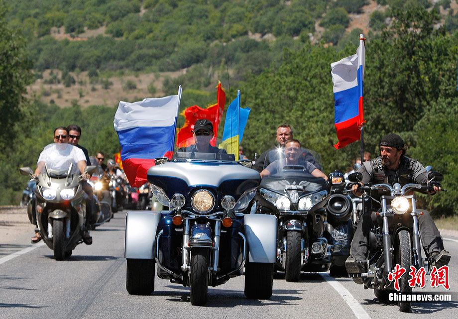 當(dāng)?shù)貢r(shí)間7月24日,在烏克蘭塞瓦斯托波爾,俄羅斯總理普京駕駛一輛哈雷摩托車前往一個(gè)俄羅斯和烏克蘭摩托車愛(ài)好者的聚會(huì)營(yíng)地參加活動(dòng)。