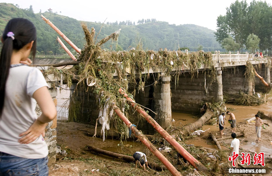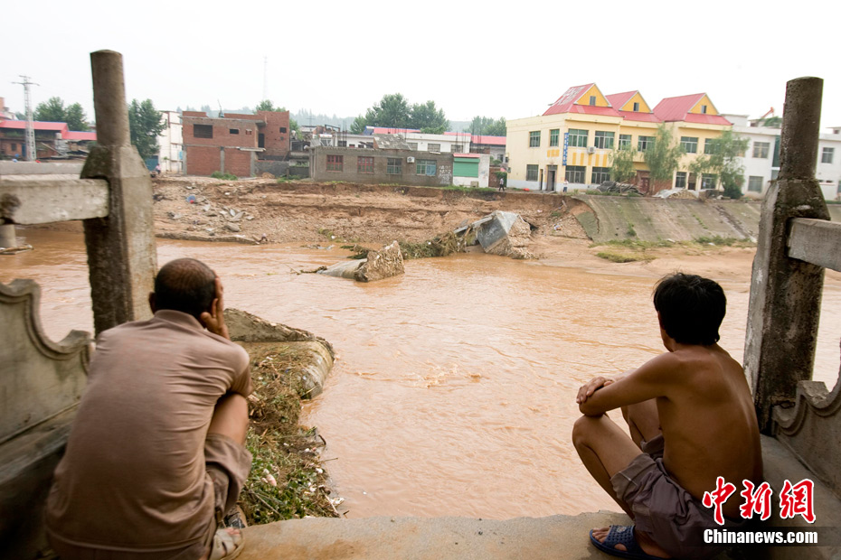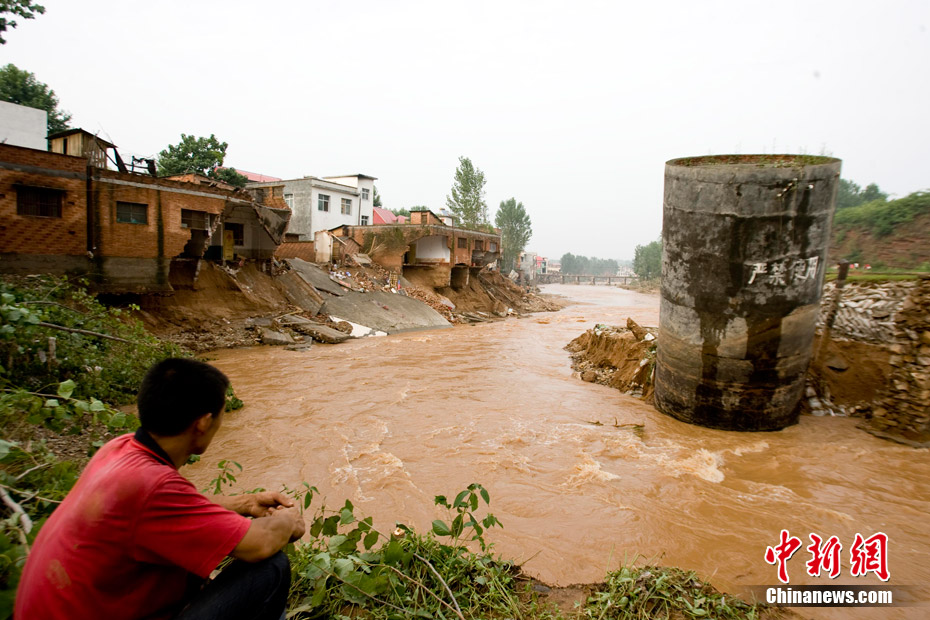 7月23日8時至25日8時,地處中原腹地的河南省遭強降雨襲擊,致使部分地區(qū)房屋倒塌、良田被毀、通訊中斷。河南省防汛抗旱指揮部25日公布的消息稱,受降雨影響,該省丹江荊紫關(guān)水文站24日15時洪峰水位217.59米,洪峰流量10000立方米每秒,為新中國成立以來最大;老灌河西峽水文站24日17時30分洪峰水位84.31米,洪峰流量7380立方米每秒,亦為1949年以來最大。伊河陸渾水庫25日8時水庫蓄水位320.77米,超歷史最高水位1.9米。中新社發(fā) 王中舉 攝
