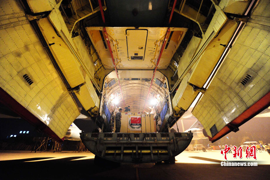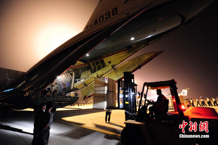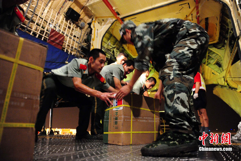 8月3日深夜,中國政府緊急援助巴基斯坦人道主義物資在河北省石家莊機場連夜裝機,準備于4日通過中國空軍飛機運往伊斯蘭堡。這批物資包括30噸藥品和凈水設備、1000頂帳篷、50臺發(fā)電機等,總價值約1000萬元人民幣。 中新社發(fā) 侯宇 攝