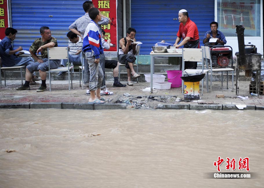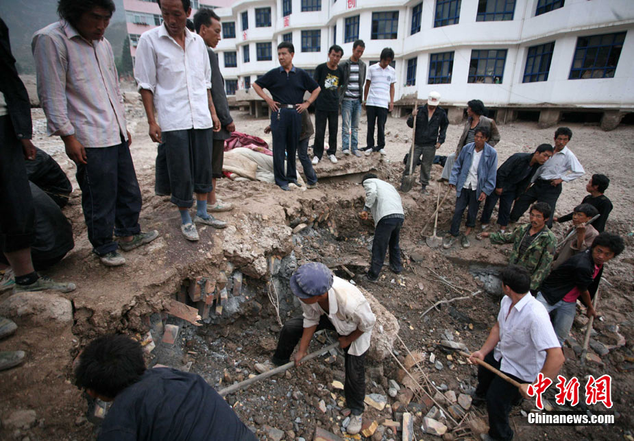 8月9日,甘肅舟曲泥石流災(zāi)區(qū)搜救進(jìn)入第二天。圖為消防官兵正在搜尋失蹤人員。中新社發(fā) 劉忠俊 攝