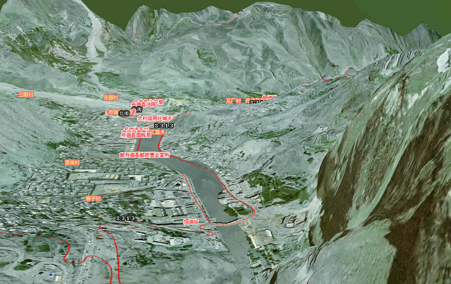 8日凌晨,甘肅省舟曲縣因強降雨引發(fā)滑坡泥石流,造成重大人員傷亡,電力、交通、通訊中斷。圖為舟曲縣(局部)災后影像圖。圖片來源:國家測繪局網(wǎng)站
