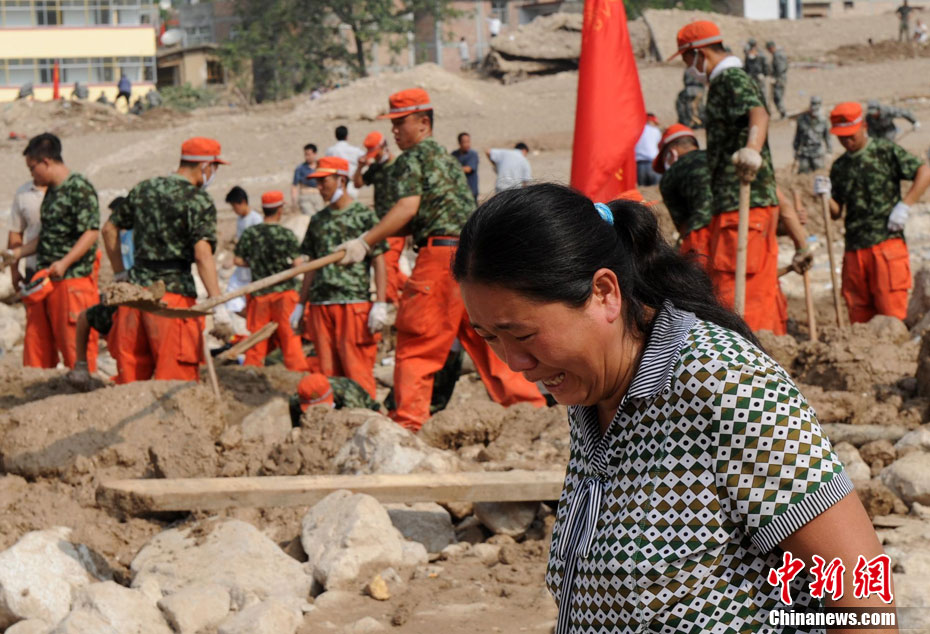 2010年8月11日,甘肅舟曲縣發(fā)生特大泥石流災(zāi)害后的第四天,目前救援工作仍在繼續(xù)。截至10日17時,泥石流災(zāi)害死亡人數(shù)已達702人,失蹤人員1042人,42人重傷。中新網(wǎng)記者 金碩 攝