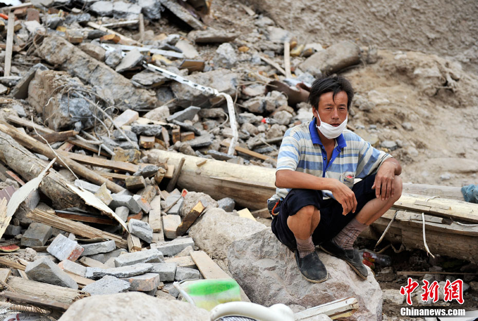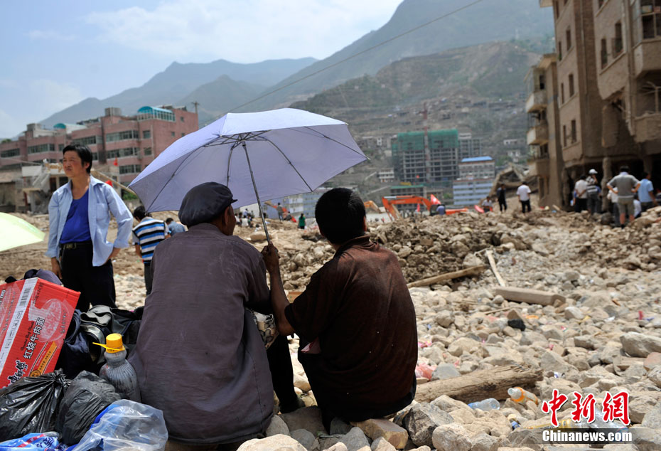 2010年8月11日,甘肅舟曲縣發(fā)生特大泥石流災(zāi)害后的第四天,救援工作仍在繼續(xù)。截至10日17時,泥石流災(zāi)害死亡人數(shù)已達(dá)702人,失蹤人員1042人,42人重傷。隨著救援工作的緊張進(jìn)行,許多受災(zāi)民眾在自己的家園附近苦苦守望,希望親人奇跡生還,希望給逝者最后的尊嚴(yán)。中新網(wǎng)記者 金碩 攝