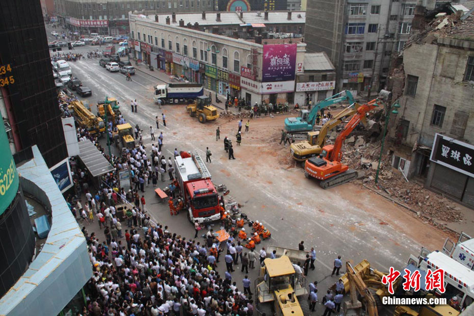 中新網(wǎng)長(zhǎng)春8月12日電 (崔顏鋒 張?zhí)旎ⅲ?2日5時(shí)30分左右,位于長(zhǎng)春市長(zhǎng)春大街和大經(jīng)路交匯處的一棟老樓突然倒塌,目前已知有4人被埋在瓦礫中。截至上午10時(shí)50分,已有一人獲救,還有一人被發(fā)現(xiàn),但據(jù)稱已經(jīng)死亡。目前,救援人員正在繼續(xù)進(jìn)行搜救。圖為救援人員在現(xiàn)場(chǎng)搜救。 張策 攝