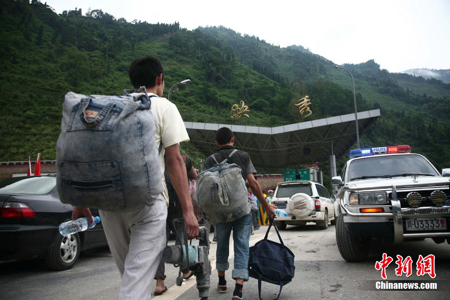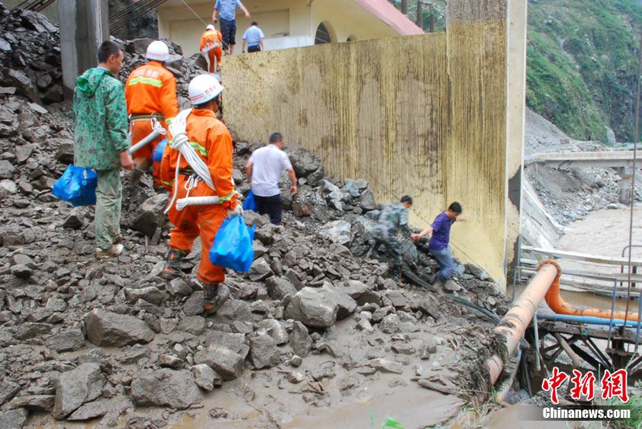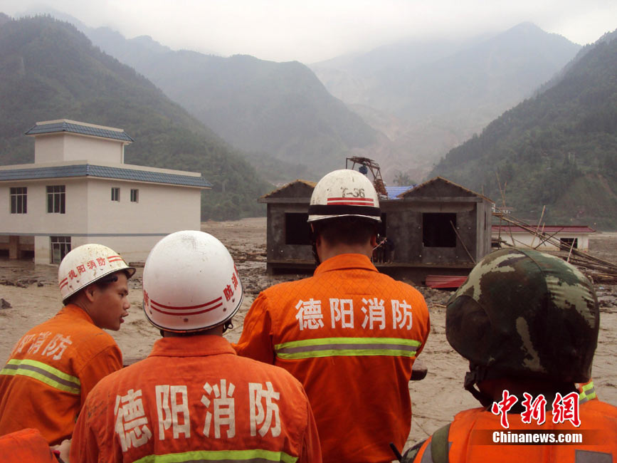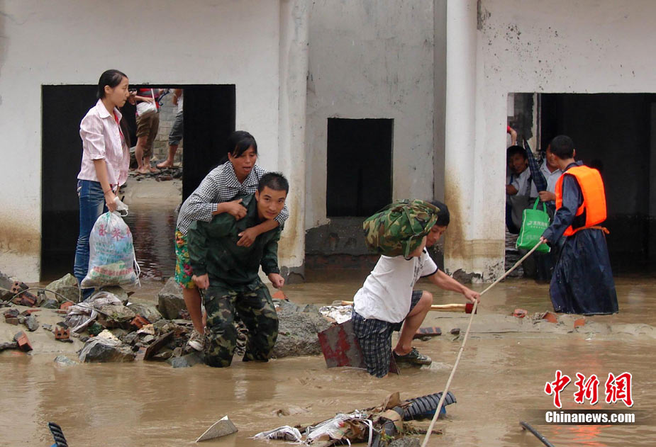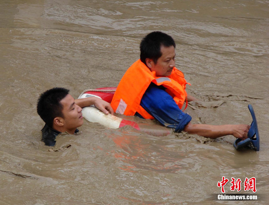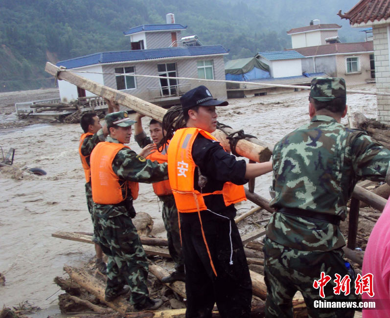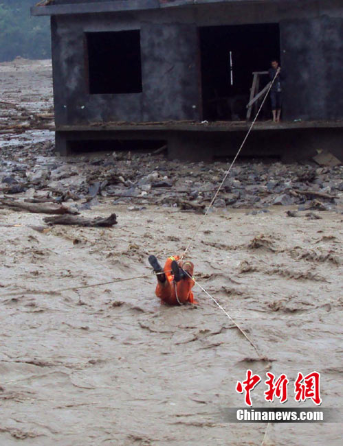 8月14日,四川德陽(yáng)綿竹市清平、天池等山區(qū)遭遇暴雨泥石流襲擊,災(zāi)害發(fā)生后,德陽(yáng)消防出動(dòng)車輛20臺(tái)次,消防官兵123人次,從各類災(zāi)害事故中營(yíng)救被困群眾26人,疏散群眾18人。圖為公安、消防、武警聯(lián)手營(yíng)救被困村民。中新社發(fā) 沈消軒 攝