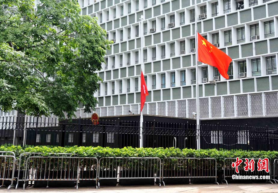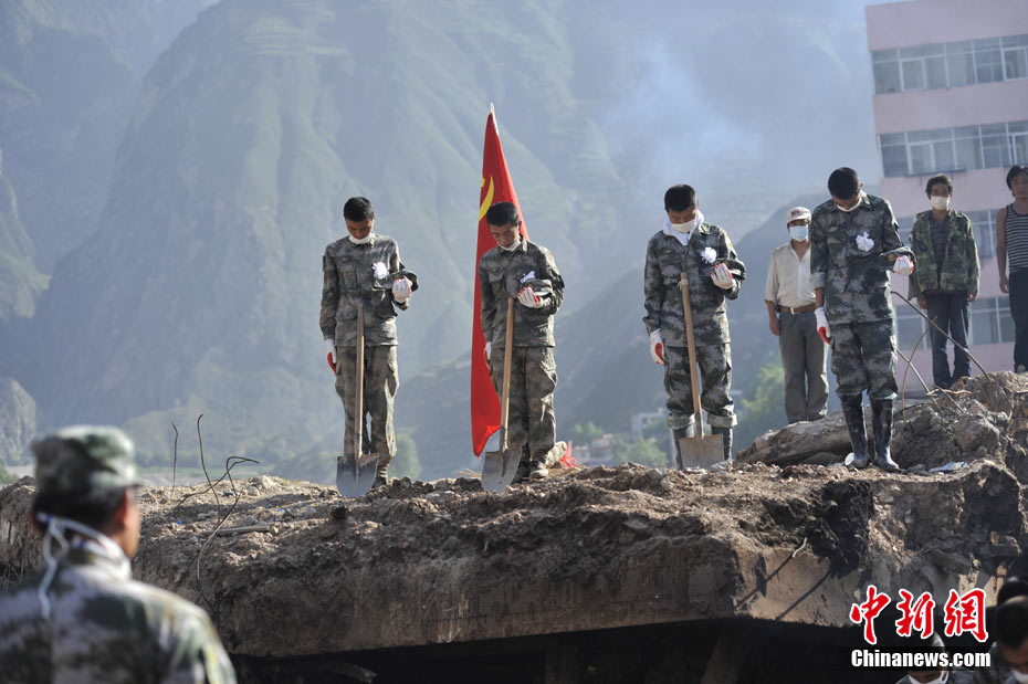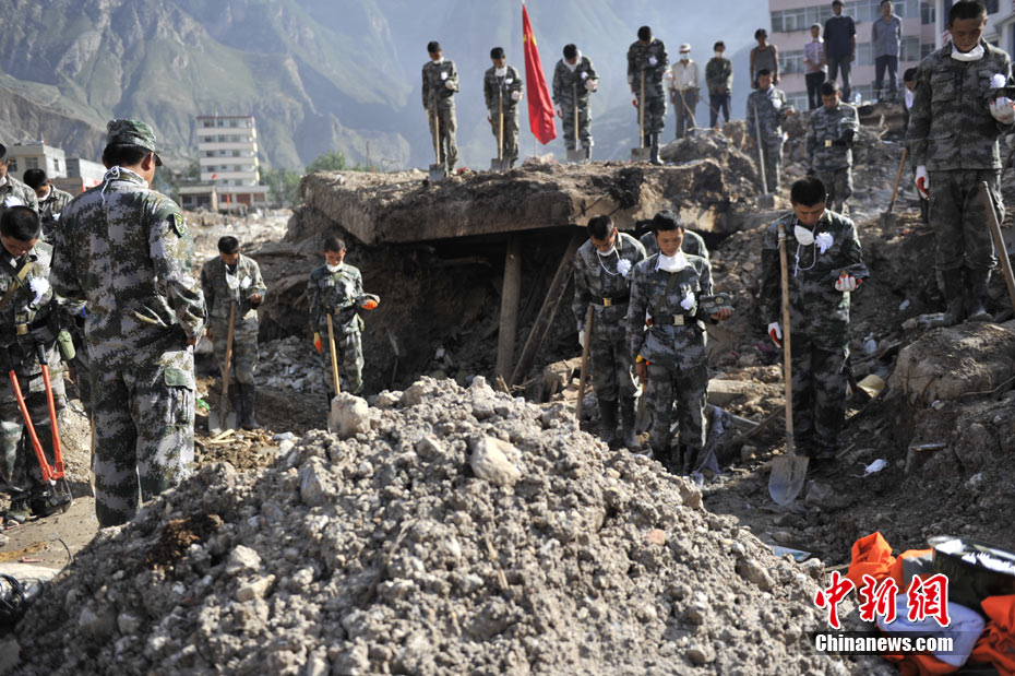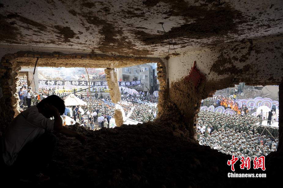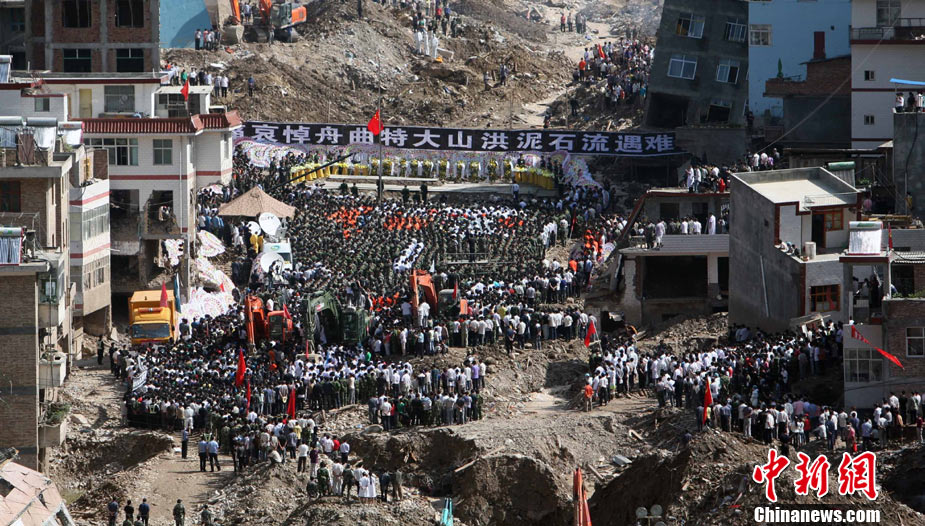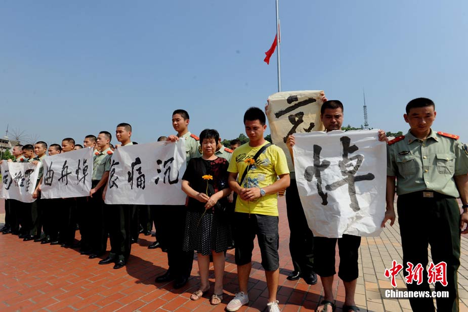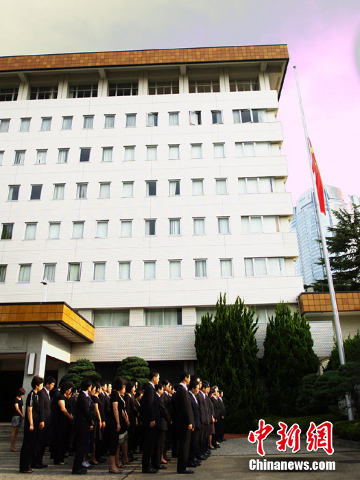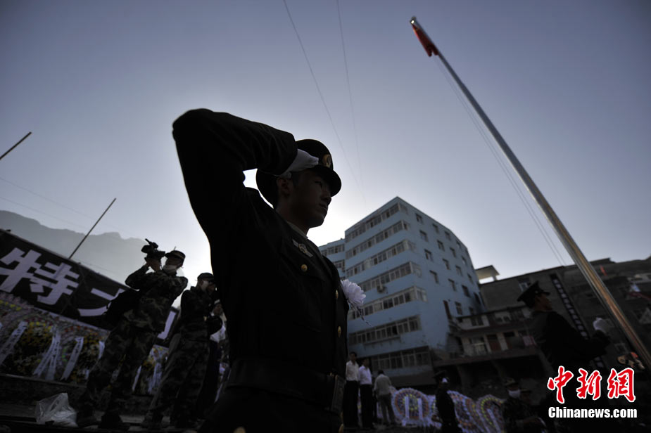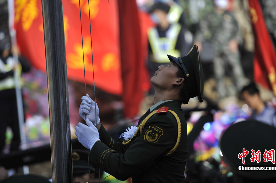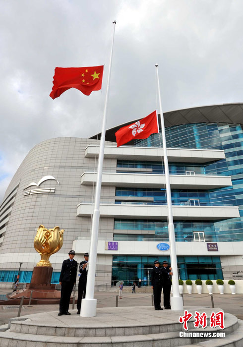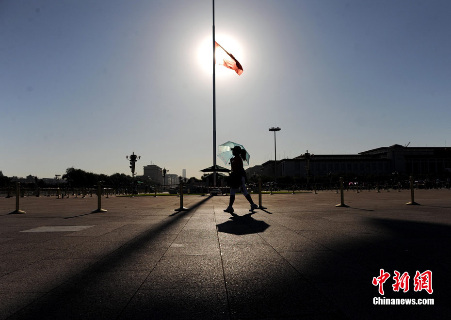 8月15日5時28分,天安門廣場下半旗,對甘肅舟曲特大山洪泥石流遇難同胞表示深切哀悼。這是繼2008年5月汶川地震和今年4月玉樹地震后,國旗第三度為普通國民而降。中新社記者 富田 攝