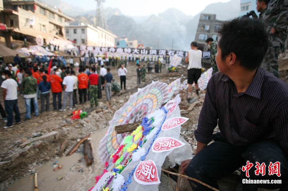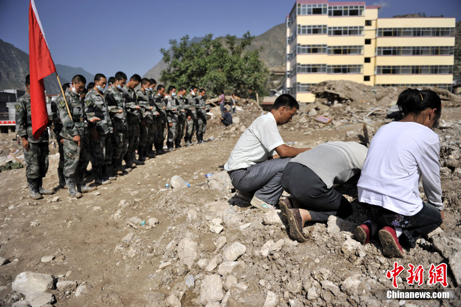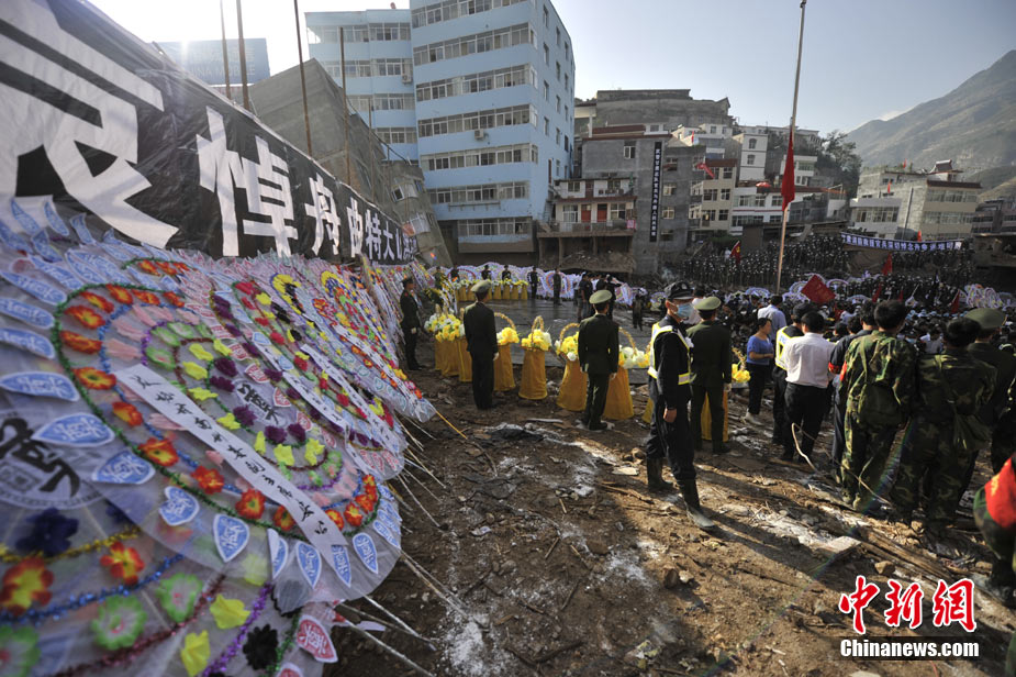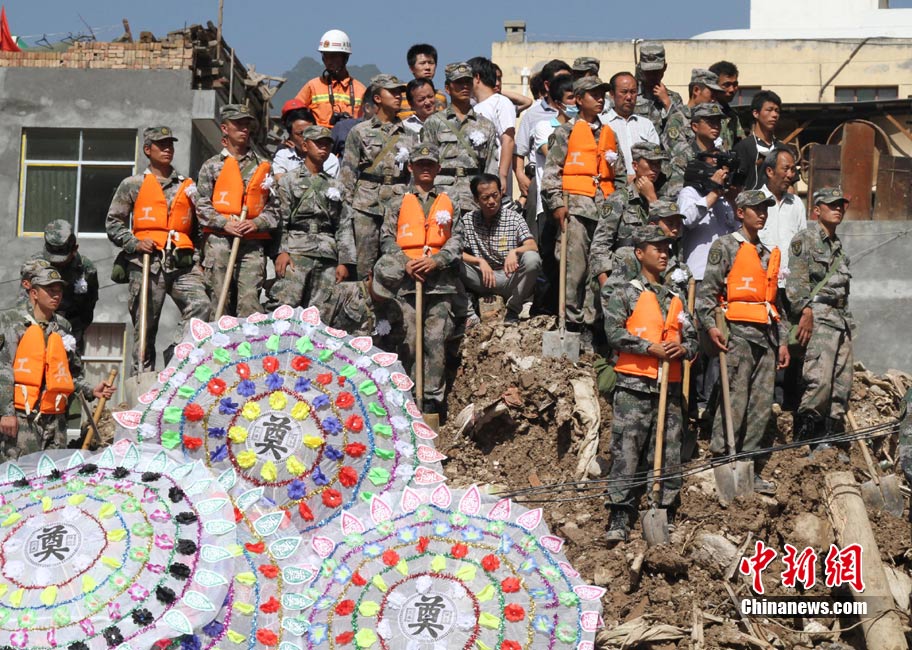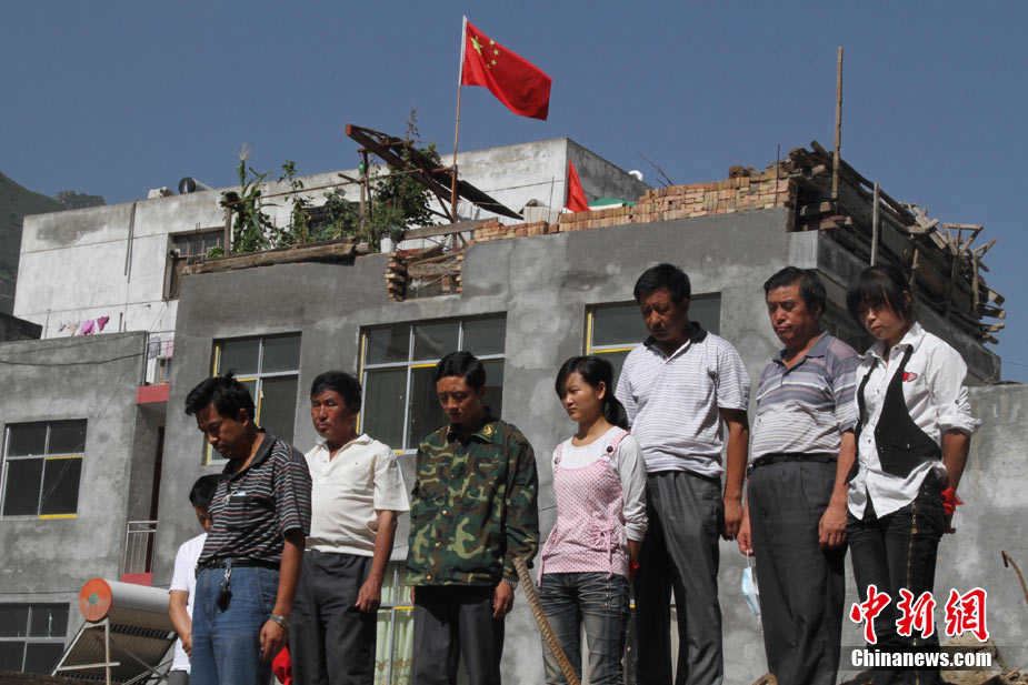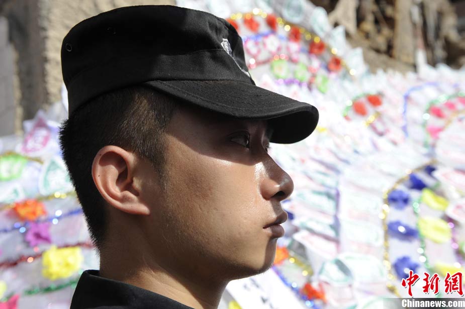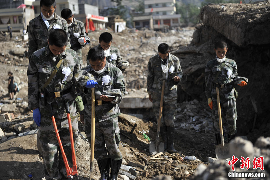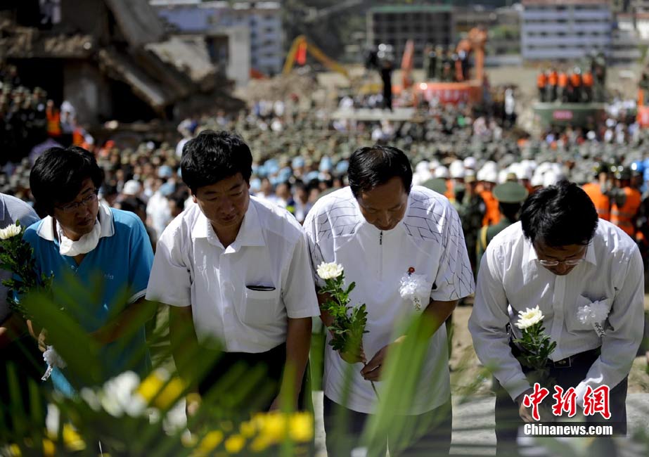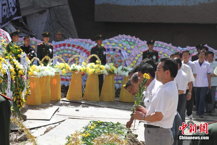 8月15日5時28分,天安門廣場下半旗,對甘肅舟曲特大山洪泥石流遇難同胞表示深切哀悼。這是繼2008年5月汶川地震和今年4月玉樹地震后,國旗第三度為普通國民而降。中新社記者 富田 攝
