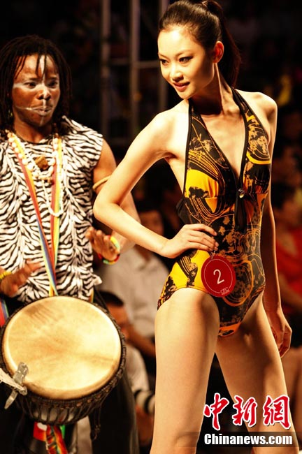 8月14日晚,“星美星感覺”2010中國模特大會結(jié)業(yè)頒獎典禮暨星美之夜時尚PARTY在北京懷柔中國影視界星美小鎮(zhèn)影視基地舉行,大會以全國性模特青年訓(xùn)練營的形式,用名師、明星、名模獨特的視角點撥靈動心智,發(fā)掘未來新星。來自全國15個省、40多個城市的150名模特新星們參加了專業(yè)培訓(xùn)。圖為2010中國模特大會新秀泳裝展示風(fēng)采。中新社發(fā) 錢興強(qiáng) 攝