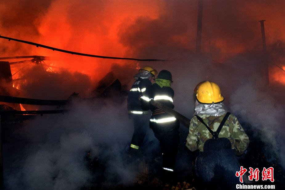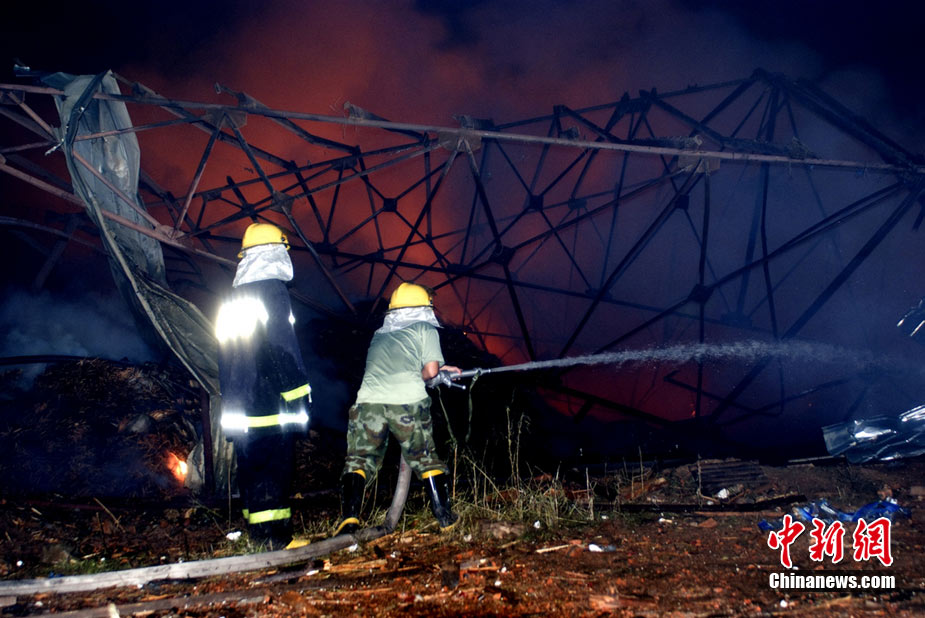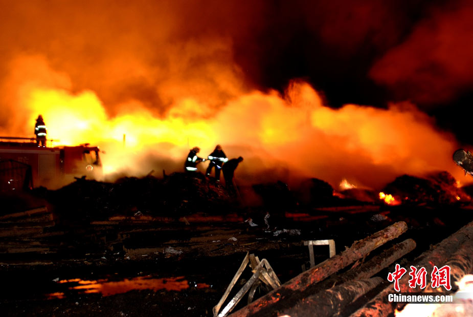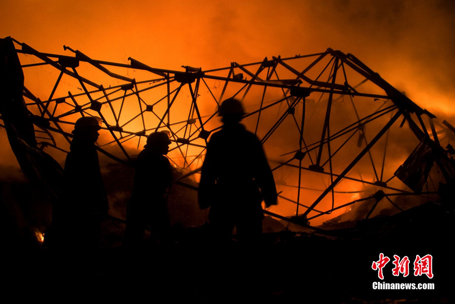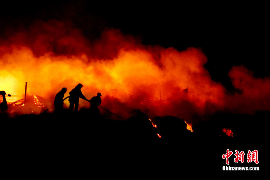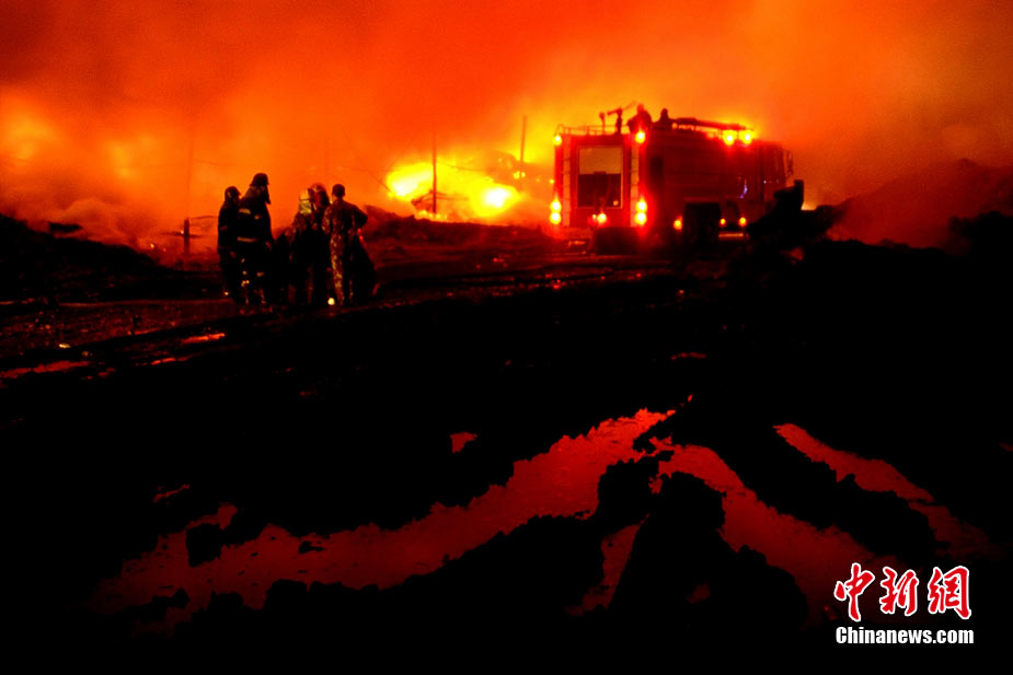 2010年8月16日9時40分左右,黑龍江省伊春市烏馬河區(qū)華利實(shí)業(yè)有限公司鞭炮廠發(fā)生持續(xù)爆炸。爆炸發(fā)生后,伊春市委、市政府緊急啟動爆炸事件、醫(yī)療救護(hù)應(yīng)急處置預(yù)案,緊急調(diào)派公安、消防、醫(yī)療救護(hù)、武警部隊、駐軍部隊2000余人及時進(jìn)行搶救,經(jīng)過8個多小時的奮力鏖戰(zhàn),因爆炸引起的火災(zāi)已全部撲滅。截至17日零時,發(fā)生在當(dāng)?shù)貫躐R河區(qū)的鞭炮廠爆炸已造成19人死亡,5人失蹤,住院傷者153人。準(zhǔn)確原因正在進(jìn)一步調(diào)查之中。圖為16日夜23時30分,武警消防部隊官兵不辭辛苦仍戰(zhàn)斗在火場一線清理殘火。陳剛 攝