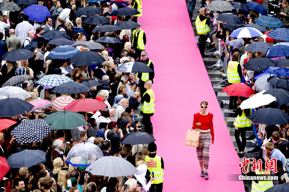 近日,為迎接哥本哈根時裝周,哥本哈根時裝協(xié)會專門在市中心建起了一條一英里長(1.61公里)的粉紅色T臺,成功打破“最長T臺”的世界紀錄。超過10萬名觀眾聚集在T臺旁欣賞時裝秀。