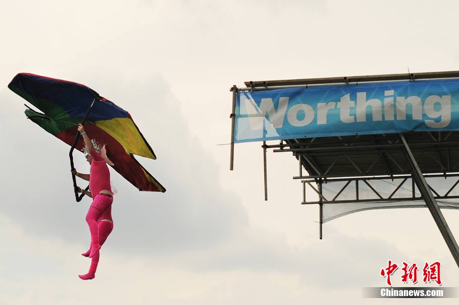 近日,一年一度的沃辛國際鳥人大賽在英國蘇塞克斯的一個海邊小鎮(zhèn)舉行。選手們不僅帶來造型奇特的飛行裝置,還身著搞笑服裝以吸引觀眾注意。