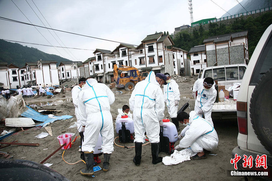 8月18日,經(jīng)過(guò)搶險(xiǎn)隊(duì)連夜奮戰(zhàn),汶川泥石流重災(zāi)區(qū)映秀鎮(zhèn)新城水位終于退去,防疫人員、清淤隊(duì)伍陸續(xù)進(jìn)入新城展開(kāi)清潔工作,武警水電三總隊(duì)于當(dāng)日對(duì)堰塞體進(jìn)行第三次爆破。圖為退水后的映秀鎮(zhèn)新城。中新社發(fā) 張浪 攝