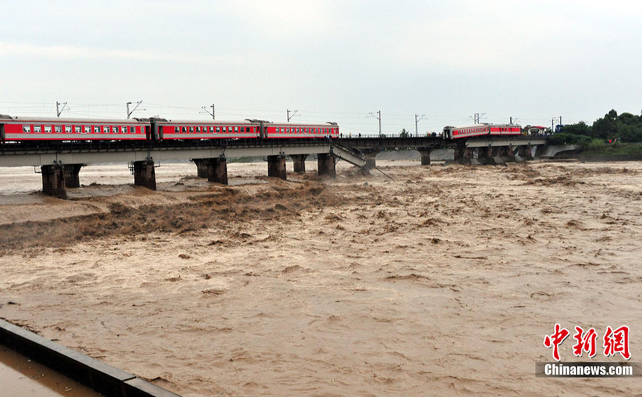 中新網(wǎng)成都8月19日電(楊杰 周迪迪 田甜)19日下午15時(shí)20分,從西安開(kāi)往昆明的K165次列車兩節(jié)車廂在四川廣漢市境內(nèi)掉進(jìn)石亭江,被洪水沖出200米遠(yuǎn)。經(jīng)過(guò)緊張的營(yíng)救,車上人員已全部安全轉(zhuǎn)移,未出現(xiàn)人員傷亡。安源 攝