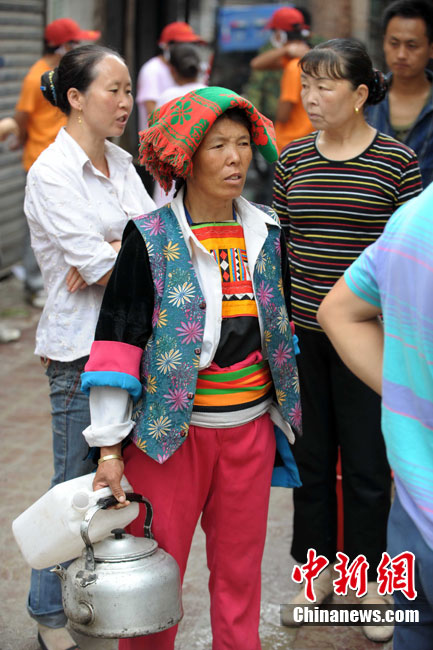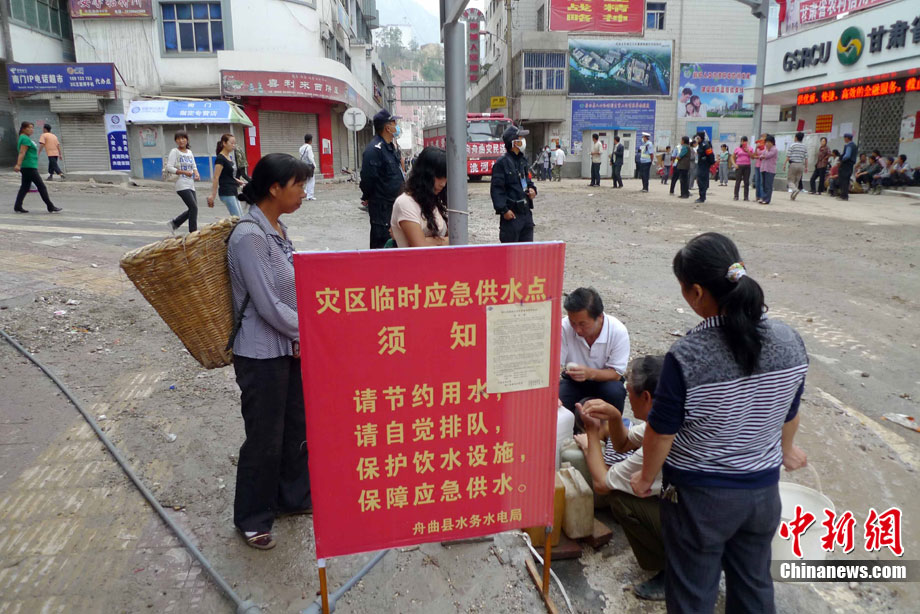 8月21日,舟曲特大山洪泥石流14天之后,舟曲縣城仍然為水所“困”:部分城市建設(shè)施仍然浸泡在水中,供排水系統(tǒng)嚴(yán)重受損。同時(shí),雖然當(dāng)?shù)?萬(wàn)人的基本飲水已經(jīng)得到了解決,但生活用水仍存在較大缺口。中新社記者 侯志紅 攝