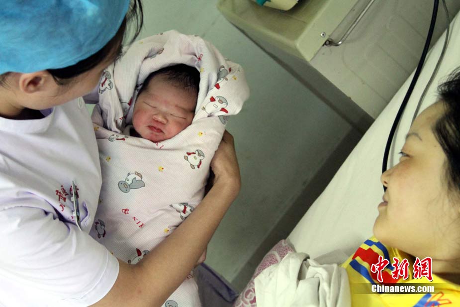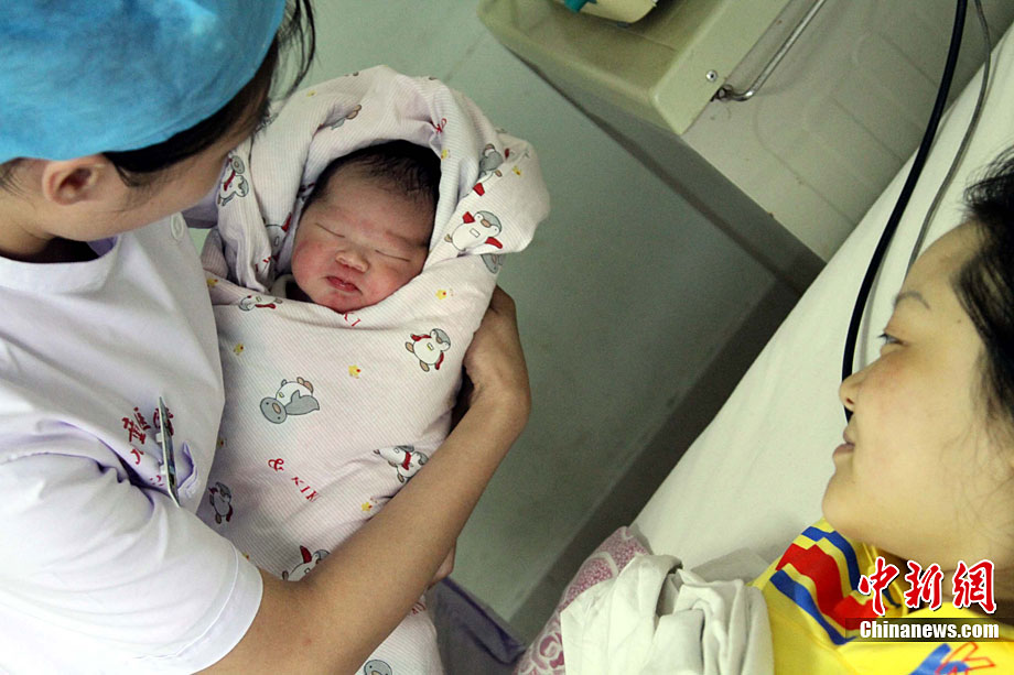 遼寧省丹東市寬甸滿(mǎn)族自治縣虎山鎮(zhèn)夾河村二組的臨產(chǎn)孕婦劉麗,因洪水被困家中。8月21日,中國(guó)海上救助隊(duì)的直升機(jī)將她運(yùn)往丹東市婦女兒童醫(yī)院,22日在該醫(yī)院順利產(chǎn)下7斤8兩的健康女?huà)。中新社發(fā) 宋太盛 攝