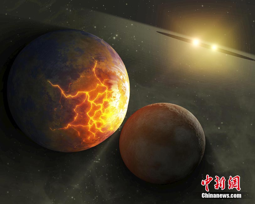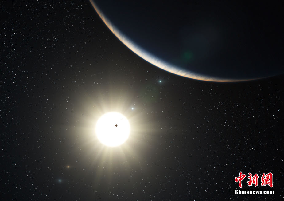 近日,科學(xué)家發(fā)現(xiàn)了一個(gè)距離地球127光年的與太陽系十分類似的巨大星系。美國宇航局太空望遠(yuǎn)鏡在太陽系外偵測(cè)到了5顆行星。這5顆行星與其母星的距離與太陽系內(nèi)行星與太陽的距離十分相似。天文學(xué)家正在尋找另外2顆行星存在的證據(jù)。圖為該星系的藝術(shù)想象圖。