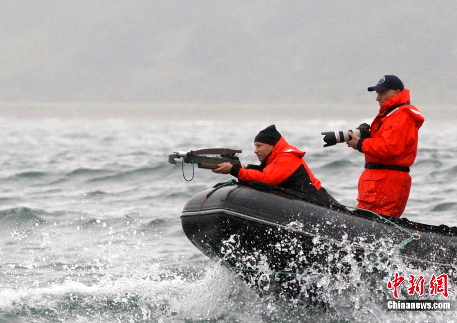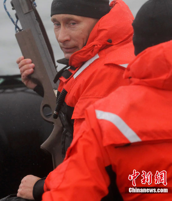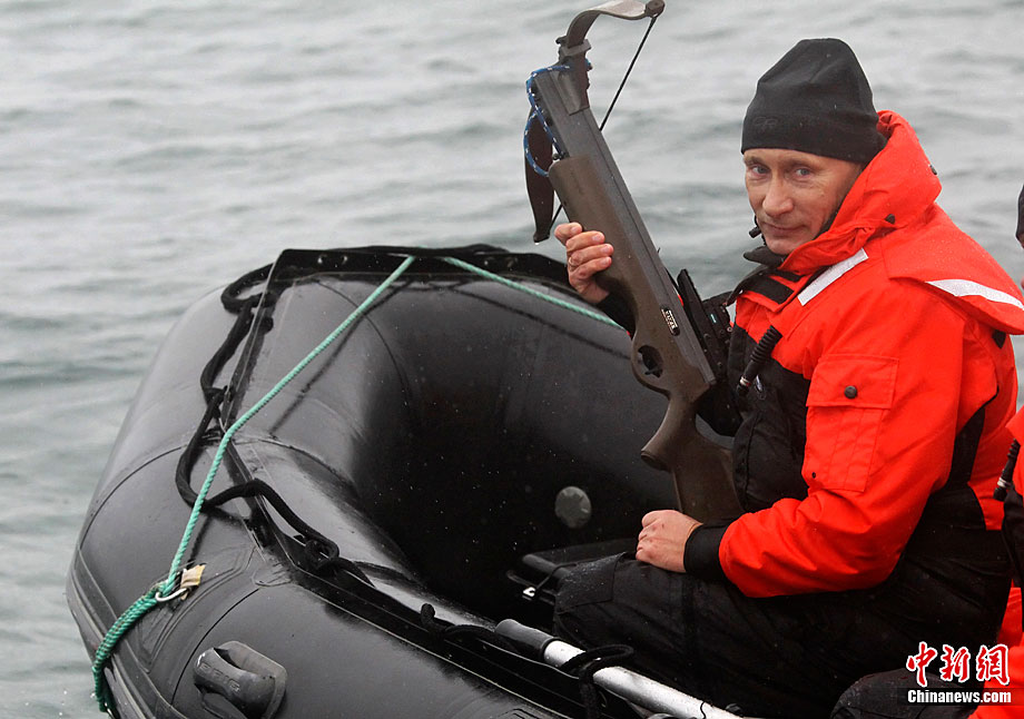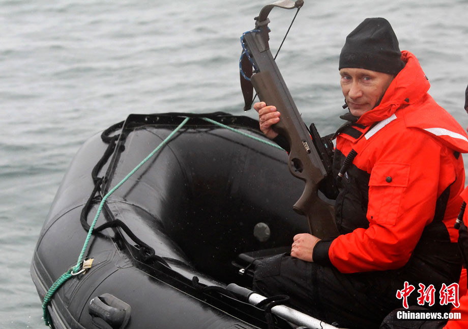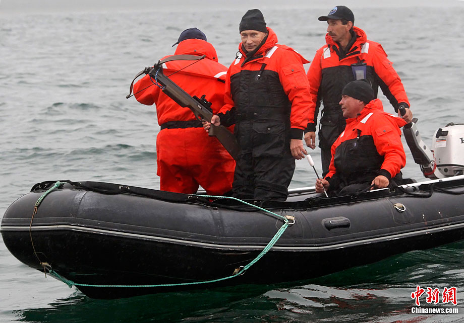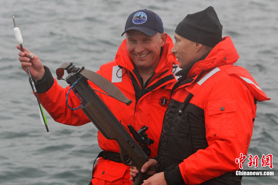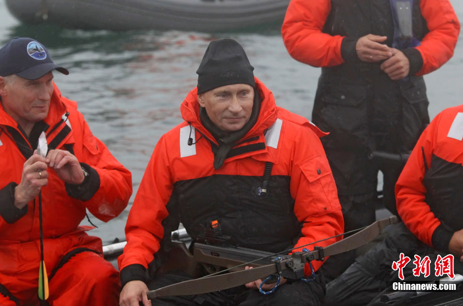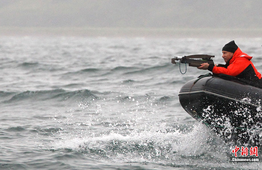當(dāng)?shù)貢r間8月25日,俄羅斯總理普京在勘察加半島附近的奧爾加港參與科學(xué)考察時,乘坐橡皮艇、手持勁弩,再次秀了一把射飛鏢獵捕灰鯨的風(fēng)采。