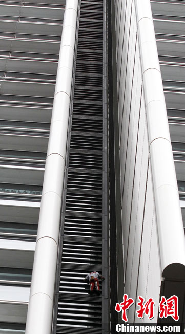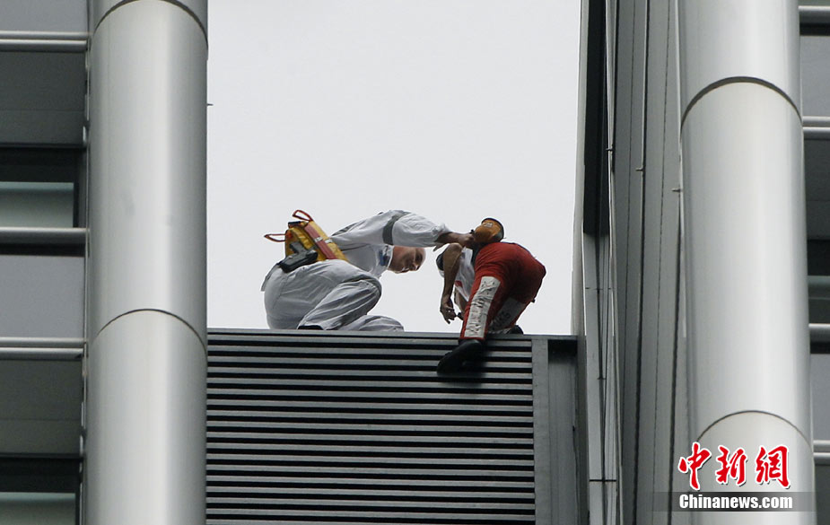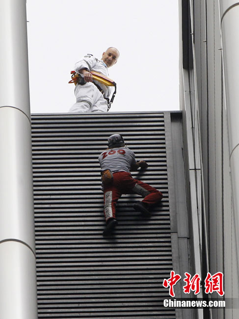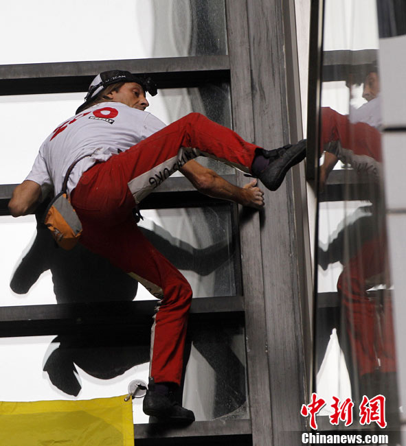 8月30日,悉尼,現(xiàn)年48歲的法國“蜘蛛俠”阿蘭·羅伯特攀爬悉尼最高住宅大樓57層高的Lumiere大樓。當(dāng)羅伯特爬上大樓樓頂,便遭到警方逮捕。據(jù)悉,到目前為止,羅伯特已經(jīng)成功地在世界各地爬上了共計(jì)70座高層建筑,包括紐約帝國大廈、芝加哥西爾斯大廈(Sears Tower)及馬來西亞吉隆坡的雙子塔等。