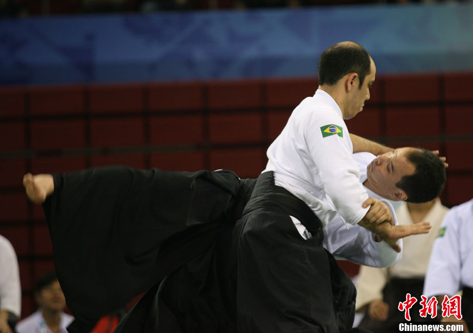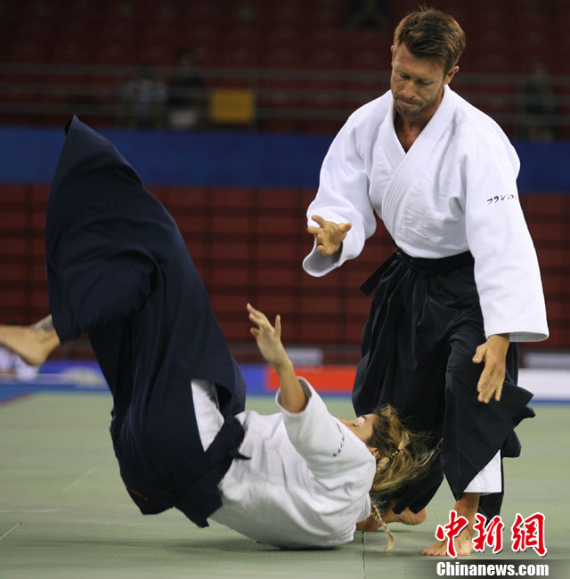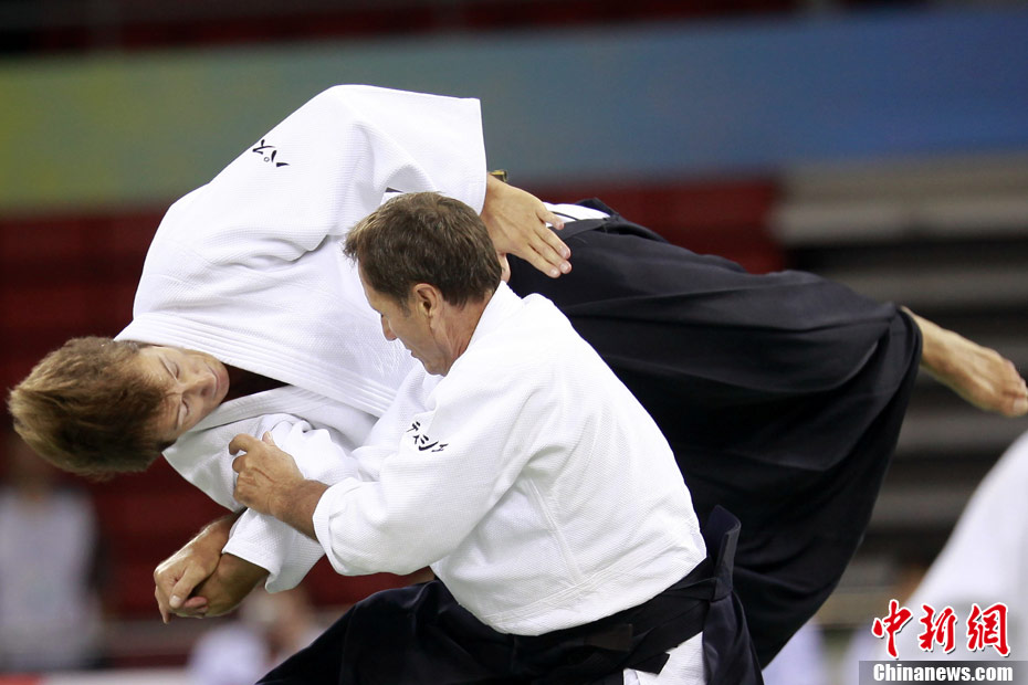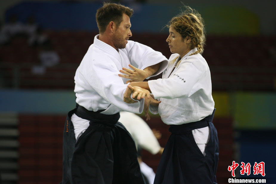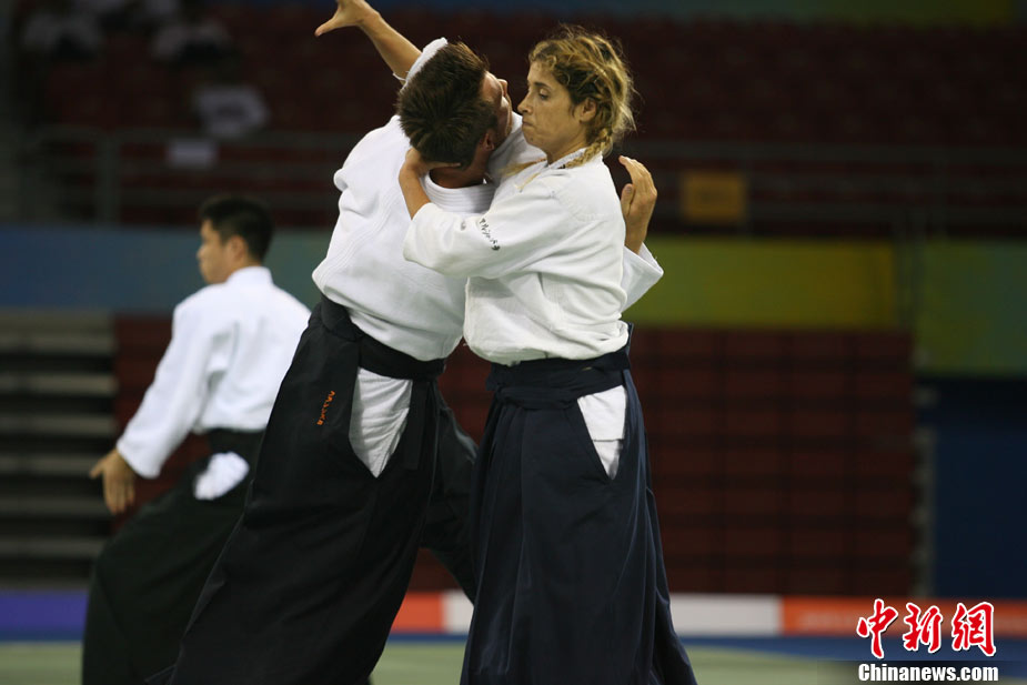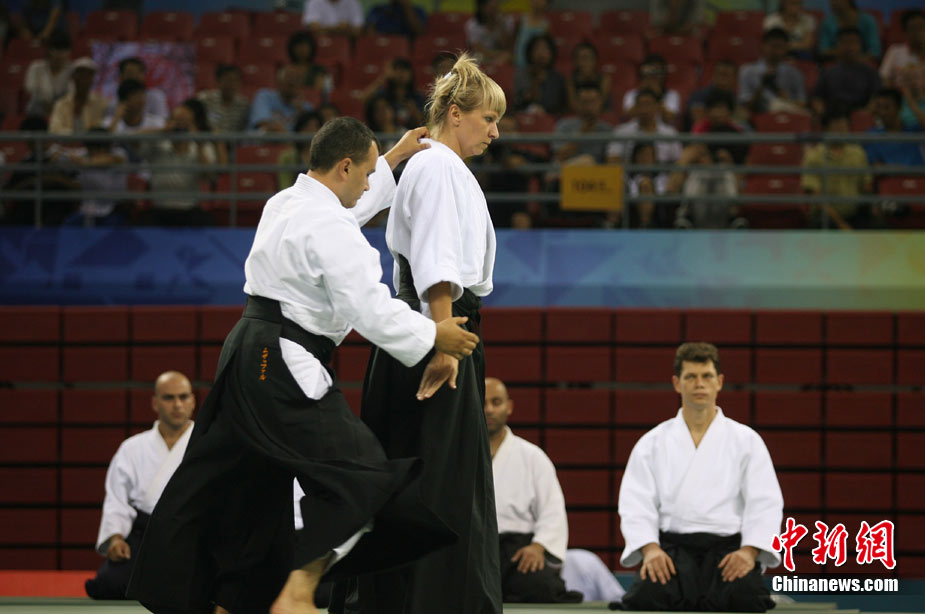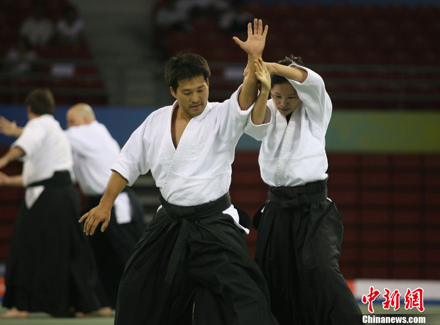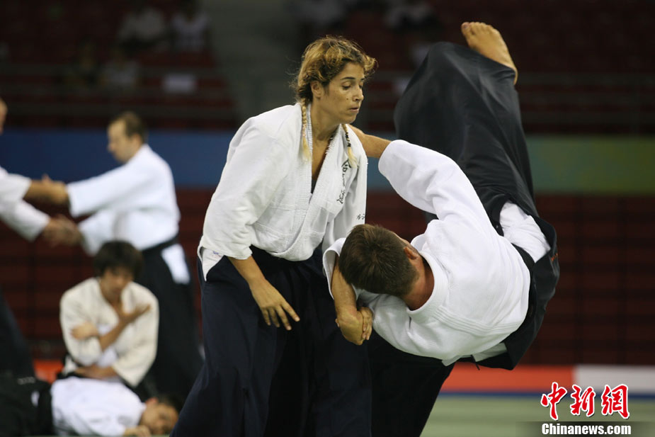 8月30日,男女選手在北京武搏會(huì)合氣道比賽上演了“異性對(duì)決”。合氣道是一種根源于日本大東流合氣柔術(shù)的近代武術(shù),合氣道不注重比賽的勝負(fù),沒有跟別人較量的思想,而是跟他人一起鍛煉和修養(yǎng)自己,因此才會(huì)有鮮見的異性同場對(duì)決的場面出現(xiàn)。本次武搏會(huì),合氣道將作為表演項(xiàng)目,無特別的規(guī)則,因此不能夠嚴(yán)格地定義勝利者或者失敗者。國際合氣道聯(lián)合會(huì)將組織高段教官來評(píng)判各項(xiàng)表演,表演賽分為基本技巧、高級(jí)技巧和復(fù)合技巧等三個(gè)單元。 中新社發(fā) 蘇丹 攝