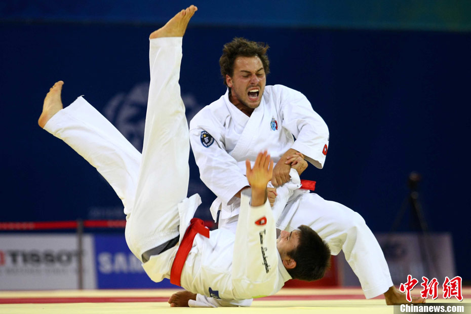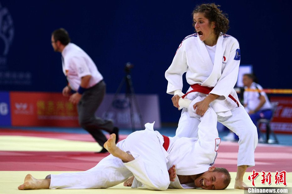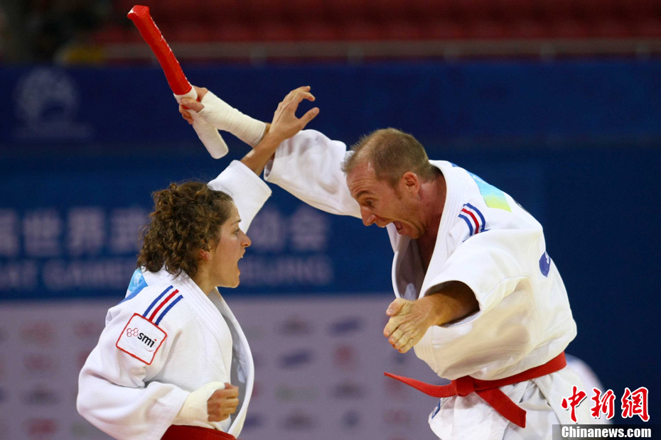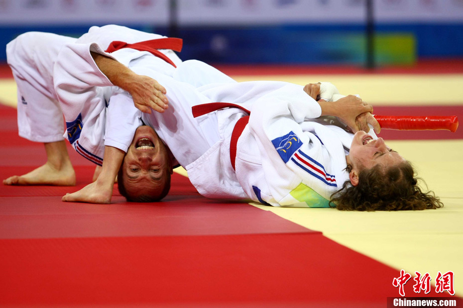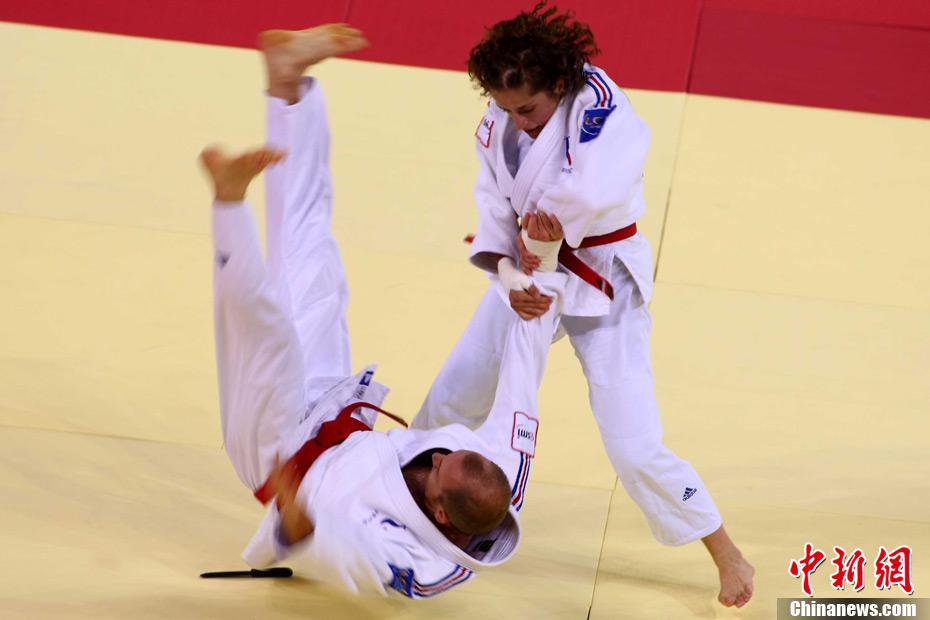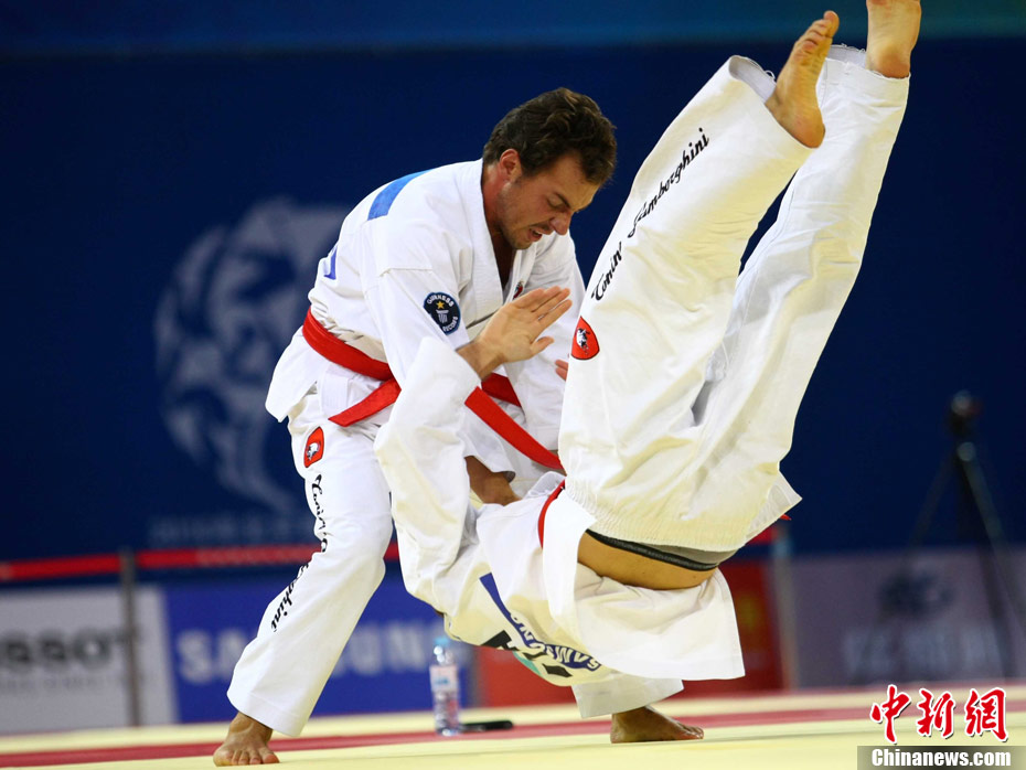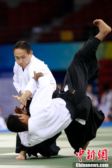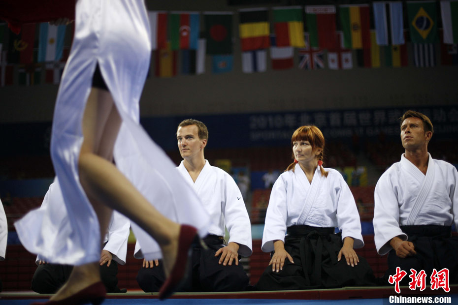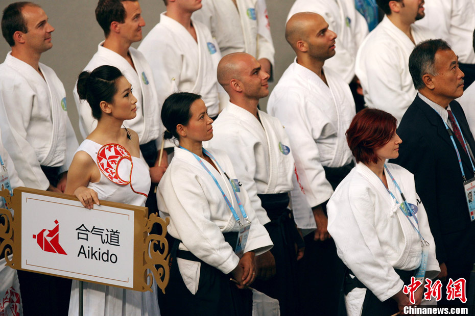 8月30日,男女選手在北京武搏會(huì)合氣道比賽上演了“異性對(duì)決”。合氣道是一種根源于日本大東流合氣柔術(shù)的近代武術(shù),合氣道不注重比賽的勝負(fù),沒有跟別人較量的思想,而是跟他人一起鍛煉和修養(yǎng)自己,因此才會(huì)有鮮見的異性同場對(duì)決的場面出現(xiàn)。本次武搏會(huì),合氣道將作為表演項(xiàng)目,無特別的規(guī)則,因此不能夠嚴(yán)格地定義勝利者或者失敗者。國際合氣道聯(lián)合會(huì)將組織高段教官來評(píng)判各項(xiàng)表演,表演賽分為基本技巧、高級(jí)技巧和復(fù)合技巧等三個(gè)單元。 中新社發(fā) 蘇丹 攝