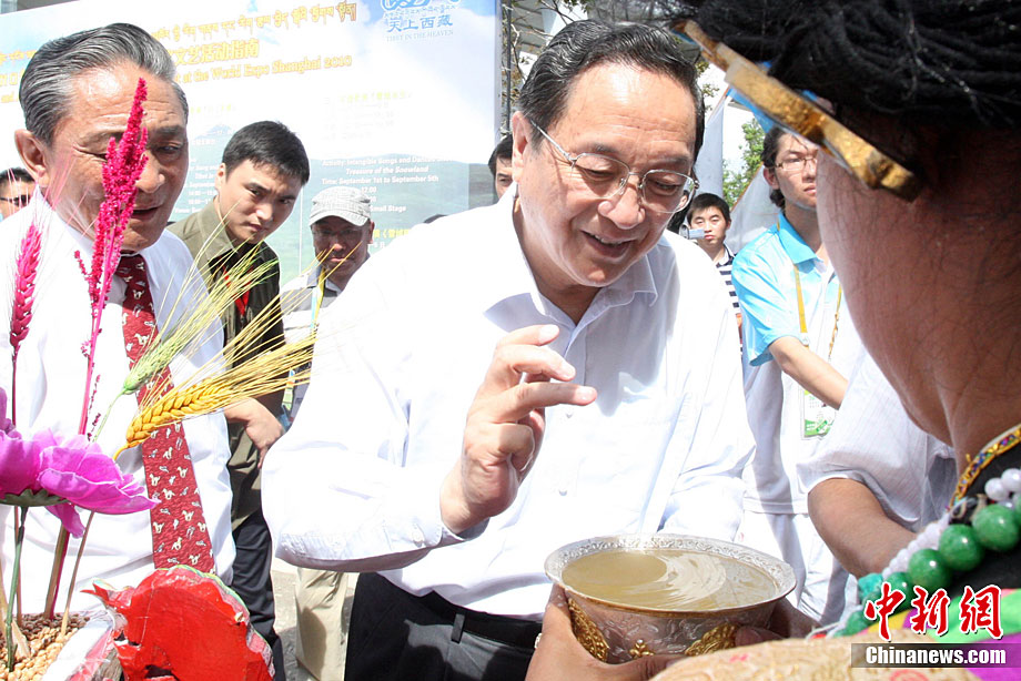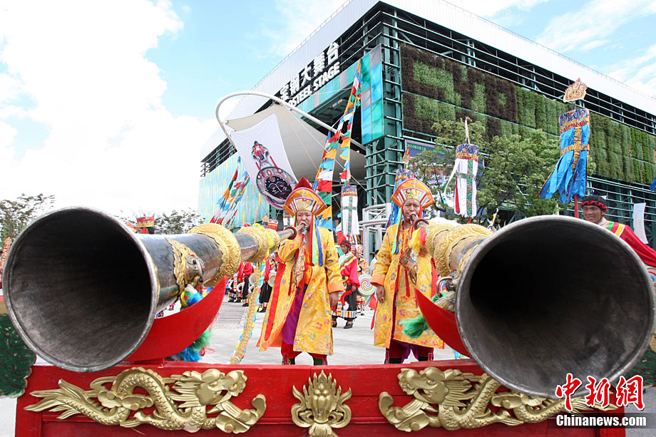 9月1日,為期5天的上海世博會西藏周在世博園拉開帷幕。活動周期間,將先后有《天上西藏》寶綱舞臺演出、非物質(zhì)文化遺產(chǎn)展示、街頭花車巡游表演、慶典廣場《雪域歡歌》、特色產(chǎn)品展示等活動與參觀者見面,全方位展示西藏人文魅力。圖為西藏活動周開幕現(xiàn)場吹響開幕號。中新社記者 湯彥俊 攝