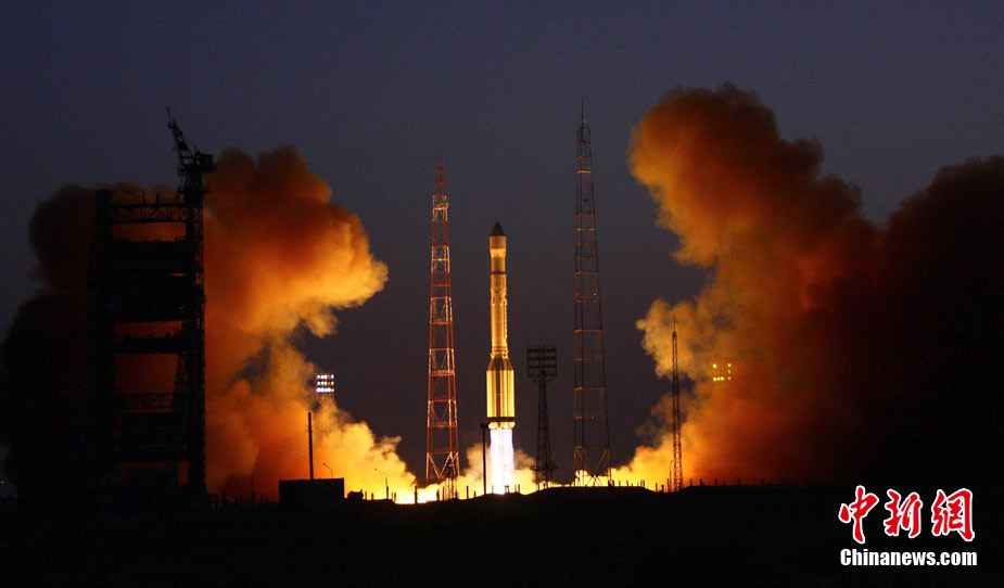 當?shù)貢r間2日凌晨,俄羅斯“質(zhì)子-M”運載火箭在哈薩克斯坦拜科努爾航天中心將3顆“格洛納斯”導航衛(wèi)星發(fā)射升空。