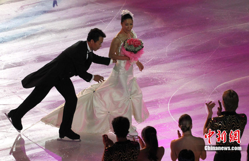 9月4日,申雪/趙宏博在首都體育館舉辦冰上婚典,并邀請普魯申科、亞古丁、約翰尼·威爾、淺田真央、羅切特等世界花滑巨星,聯(lián)袂世界著名編舞大師瑞內(nèi)·羅卡、歌星張靚穎、小提琴家呂思清等,為中國觀眾奉獻上一場賞心悅目、浪漫唯美的視聽盛宴。