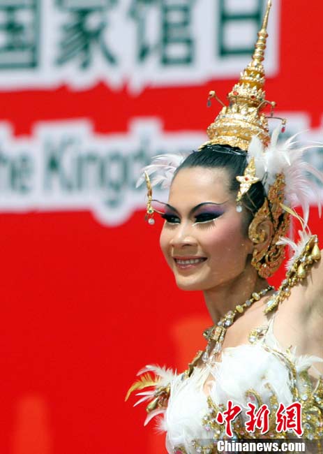 9月5日,上海世博會迎來泰國國家館日。當(dāng)日在世博中心舉行的慶典儀式上,一位泰國女舞者為大家表演泰國傳統(tǒng)舞蹈,展示迷人的泰式風(fēng)情。中新社記者 湯彥俊 攝