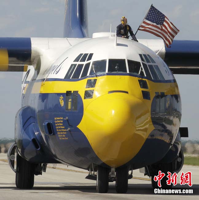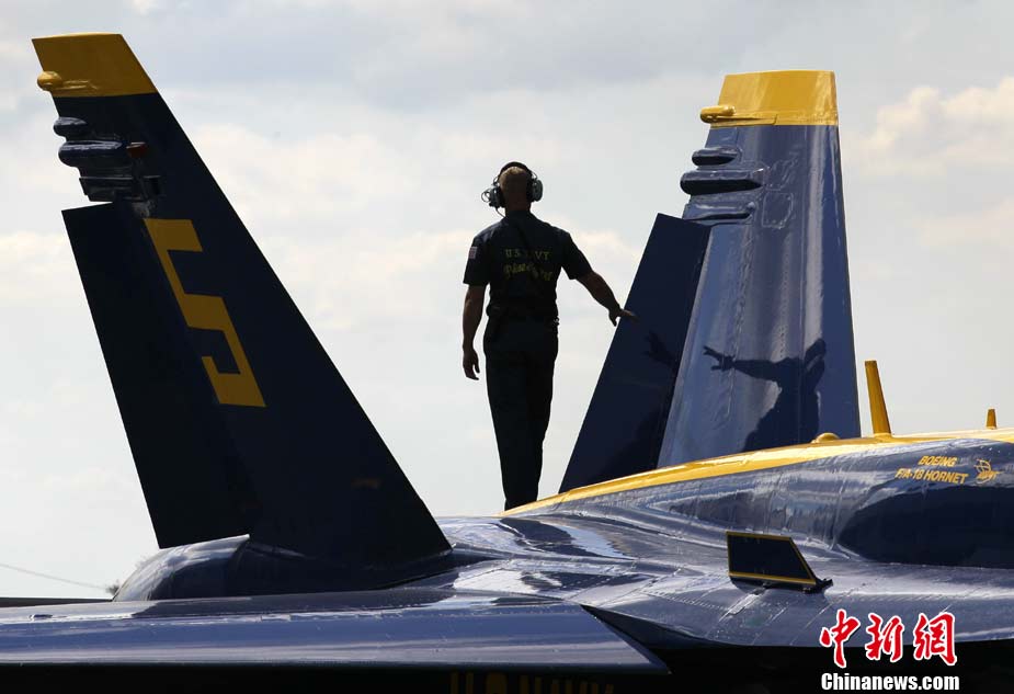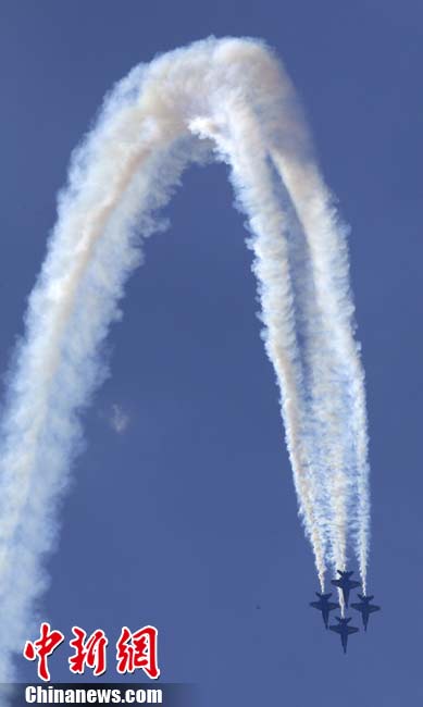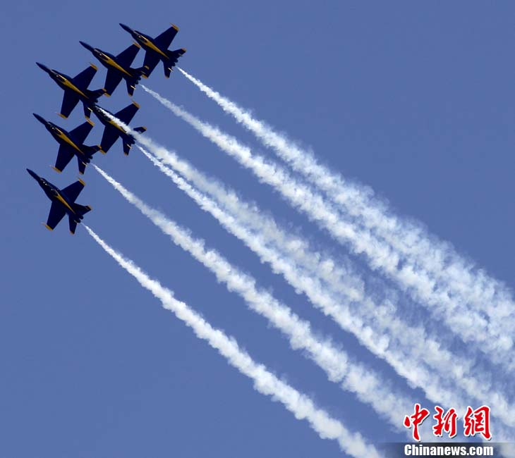 “藍色天使”飛行表演隊進行空中特技表演
