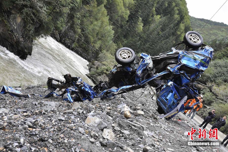9月5日,四川馬爾康梭磨鄉(xiāng)發(fā)生一起車禍,導(dǎo)致兩輛車墜入河中,目前,其中的一輛面包車已被打撈上岸,車內(nèi)有3人喪生,另一輛皮卡車還在搜尋之中,事故原因正在進(jìn)一步調(diào)查中。圖為面包車被打撈上岸。中新社發(fā) 沈消軒 攝