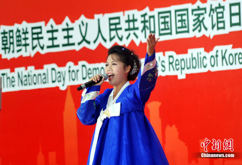 9月6日,上海世博會(huì)迎來(lái)朝鮮國(guó)家館日。平壤國(guó)家藝術(shù)團(tuán)的演員用中文演唱《紅旗飄飄》。中新社記者 蔣雪林 攝