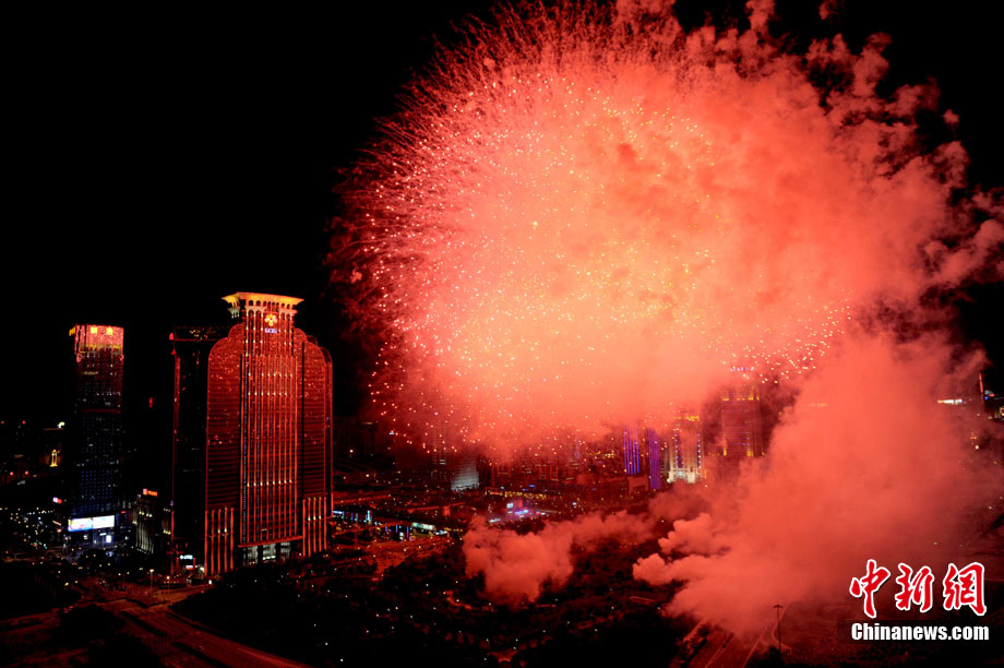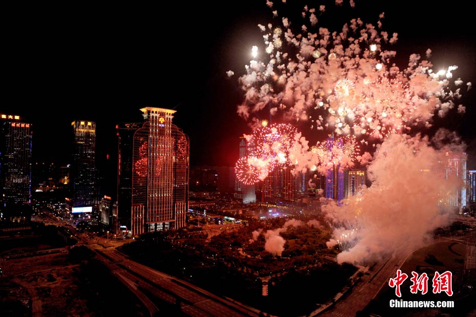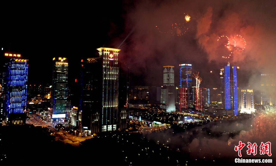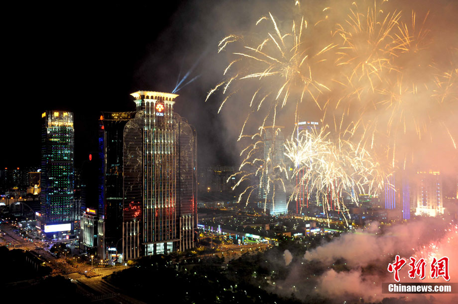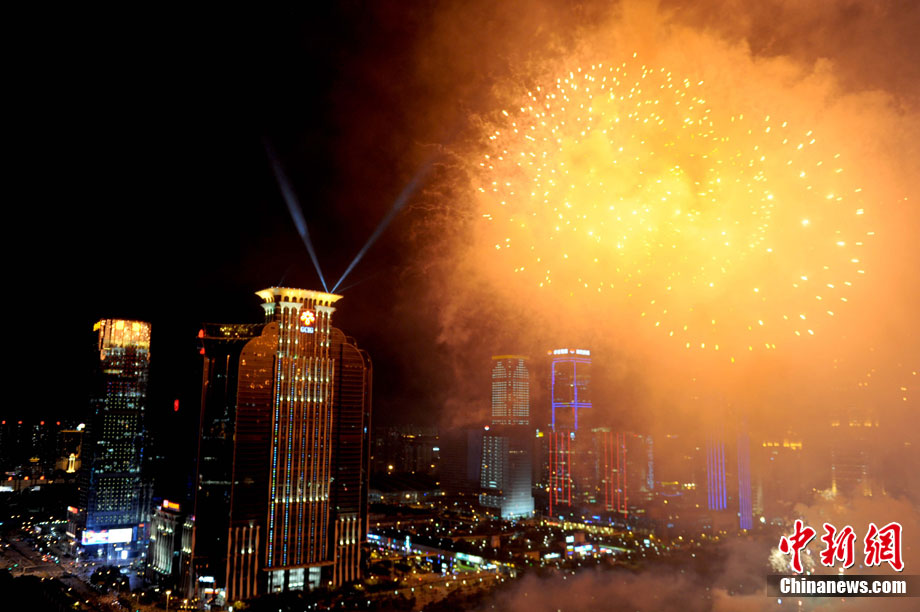 9月6日晚8點30分,深圳夜空璀璨絢麗,慶祝深圳經(jīng)濟特區(qū)建立30周年焰火晚會在深南大道水晶島舉行。今晚燃放煙花數(shù)量145107發(fā),主要品種19種,全長30分鐘,共四個樂章。深圳市民分別在蓮花山公園、市民中心、深南路、彩田路、會展中心等區(qū)域觀看深圳經(jīng)濟特區(qū)30周年慶典煙花晚會。中新社記者 陳文 攝