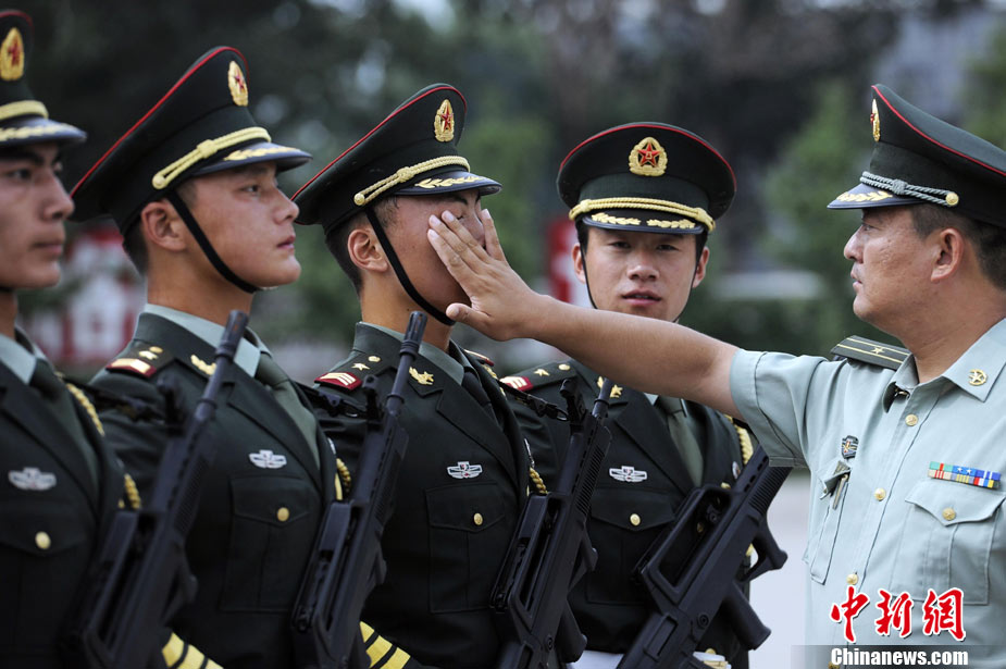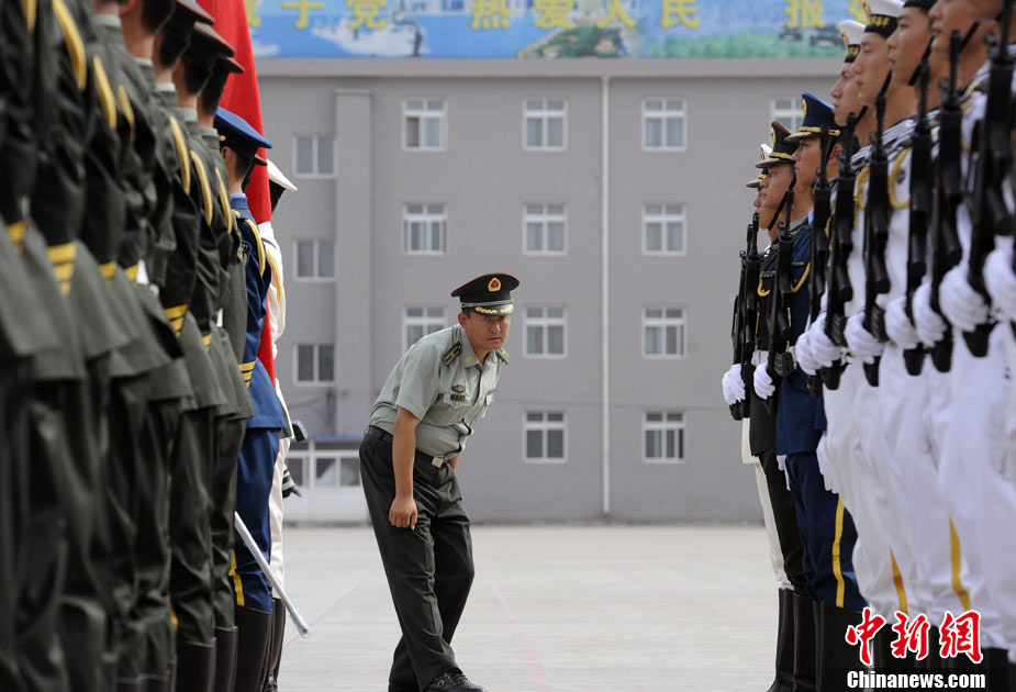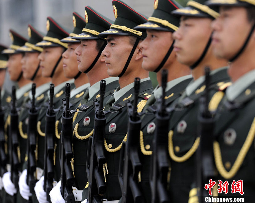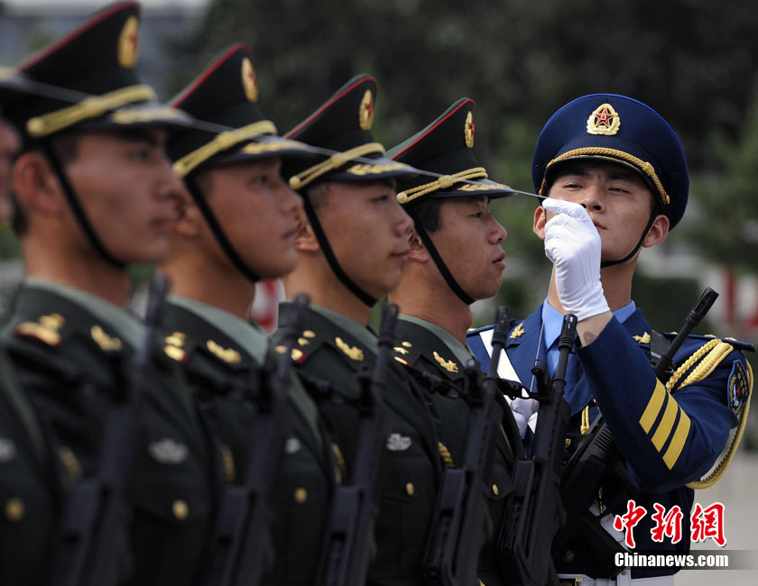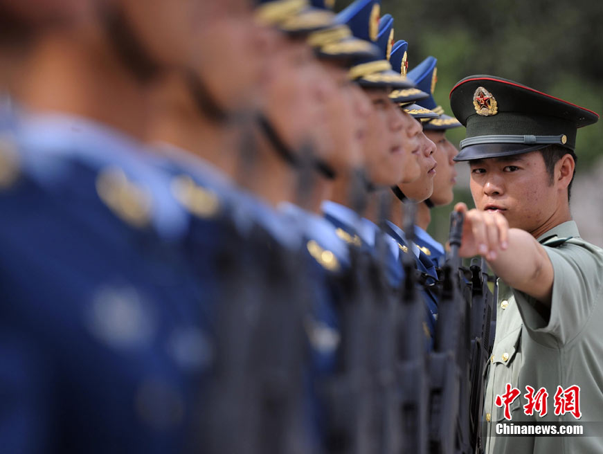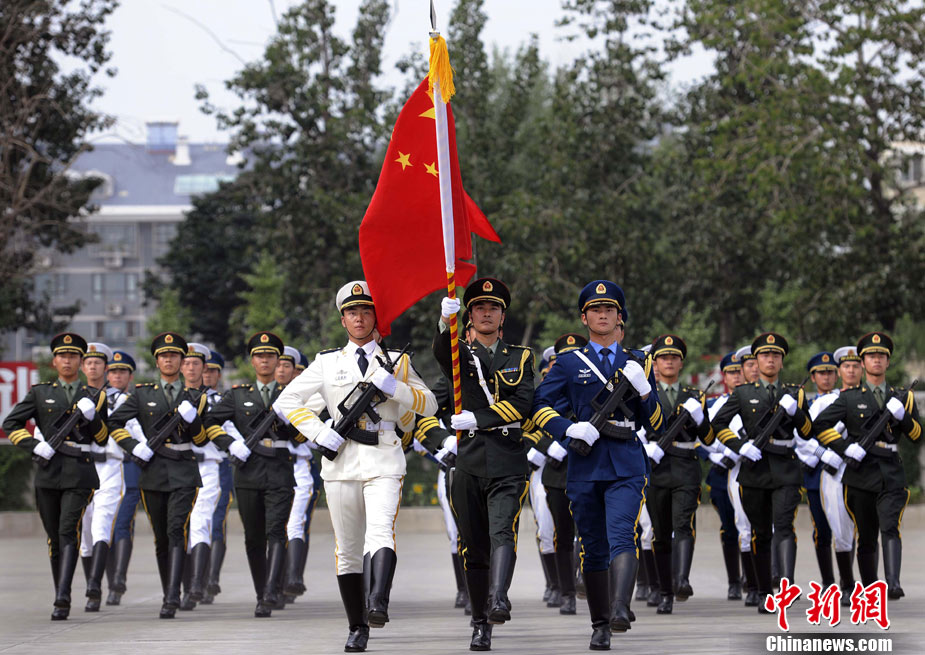 中國(guó)國(guó)防部9日宣布,應(yīng)墨西哥國(guó)防部邀請(qǐng),由解放軍北京衛(wèi)戍區(qū)儀仗大隊(duì)選派36人組成的中國(guó)人民解放軍三軍儀仗方隊(duì),今日從上海啟程赴墨西哥參加墨獨(dú)立200周年慶典閱兵。圖為近日中國(guó)人民解放軍陸?杖妰x仗隊(duì)?wèi)?zhàn)士在駐地訓(xùn)練。中新社記者 劉震 攝