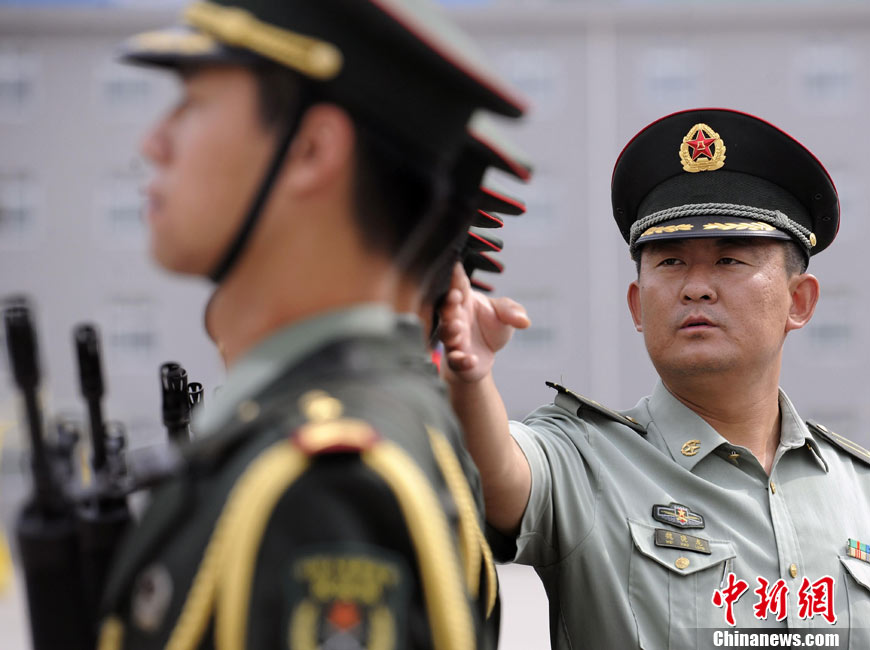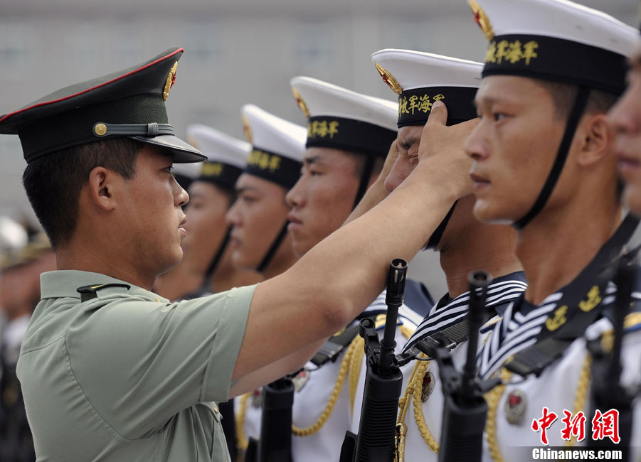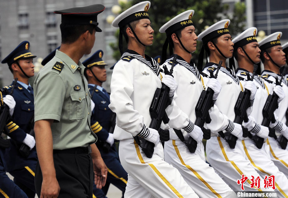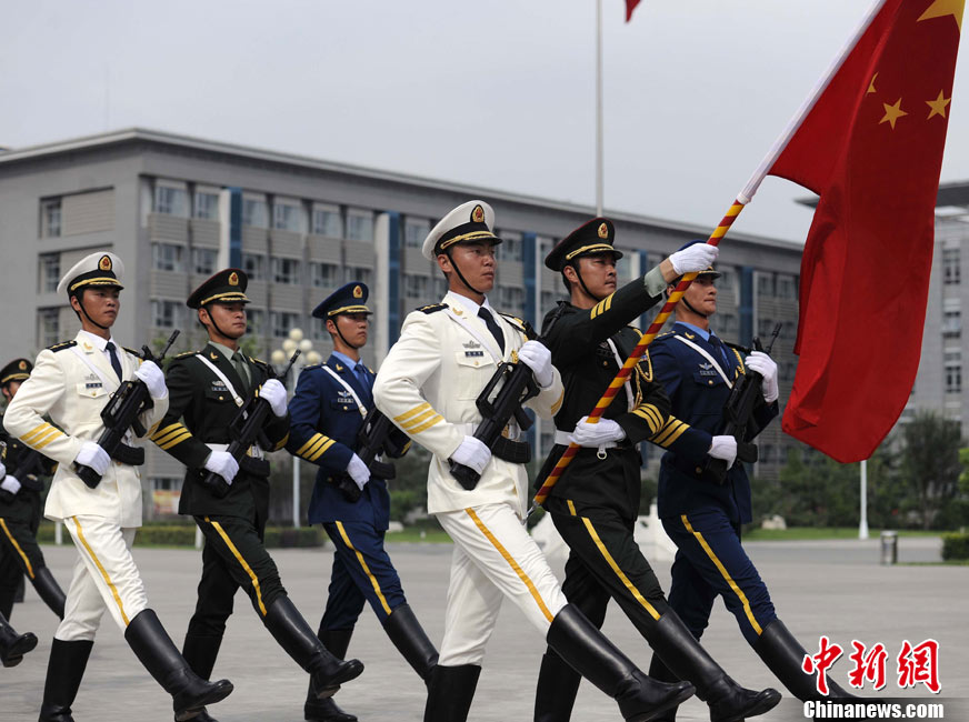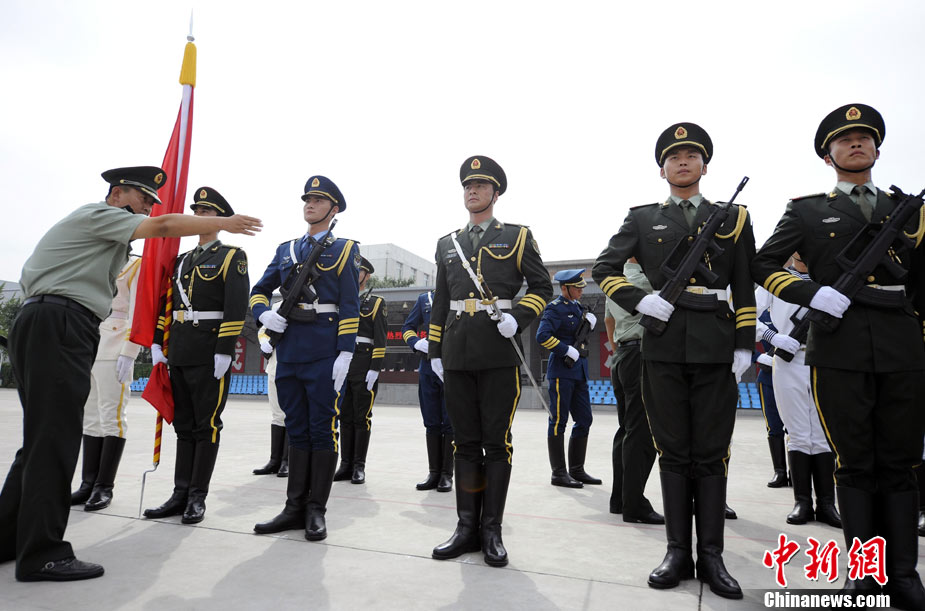 中國(guó)國(guó)防部9日宣布,應(yīng)墨西哥國(guó)防部邀請(qǐng),由解放軍北京衛(wèi)戍區(qū)儀仗大隊(duì)選派36人組成的中國(guó)人民解放軍三軍儀仗方隊(duì),今日從上海啟程赴墨西哥參加墨獨(dú)立200周年慶典閱兵。圖為近日中國(guó)人民解放軍陸?杖妰x仗隊(duì)?wèi)?zhàn)士在駐地訓(xùn)練。中新社記者 劉震 攝