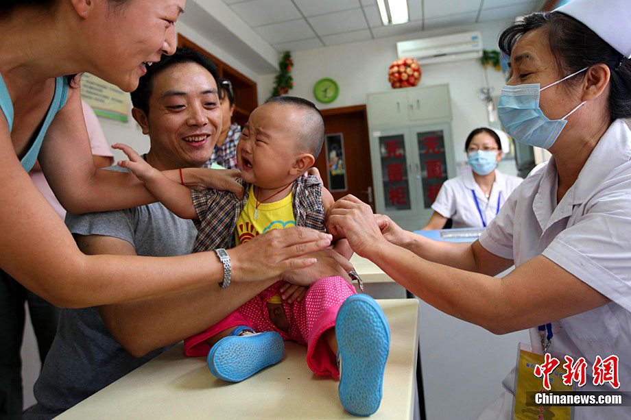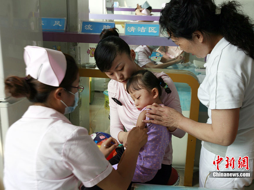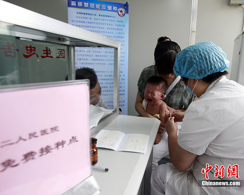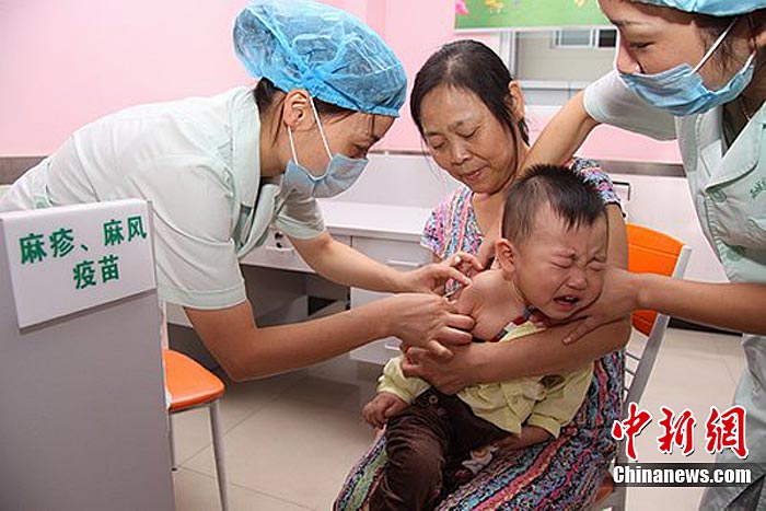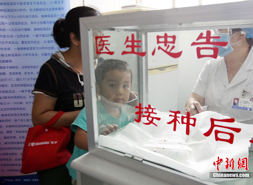 9月11日,中國史上最大規(guī)模的“麻疹強化免疫”啟動,河南省鄭州市第二人民醫(yī)院疫苗接種醫(yī)生展示由中國企業(yè)自行生產(chǎn)的麻疹疫苗。據(jù)中國疾控中心副主任楊維介紹,目前中國使用的麻疹疫苗,全部都是由中國企業(yè)自己來生產(chǎn),據(jù)初步統(tǒng)計,將近一億兒童接種麻疹疫苗。中新社記者 王中舉 攝
