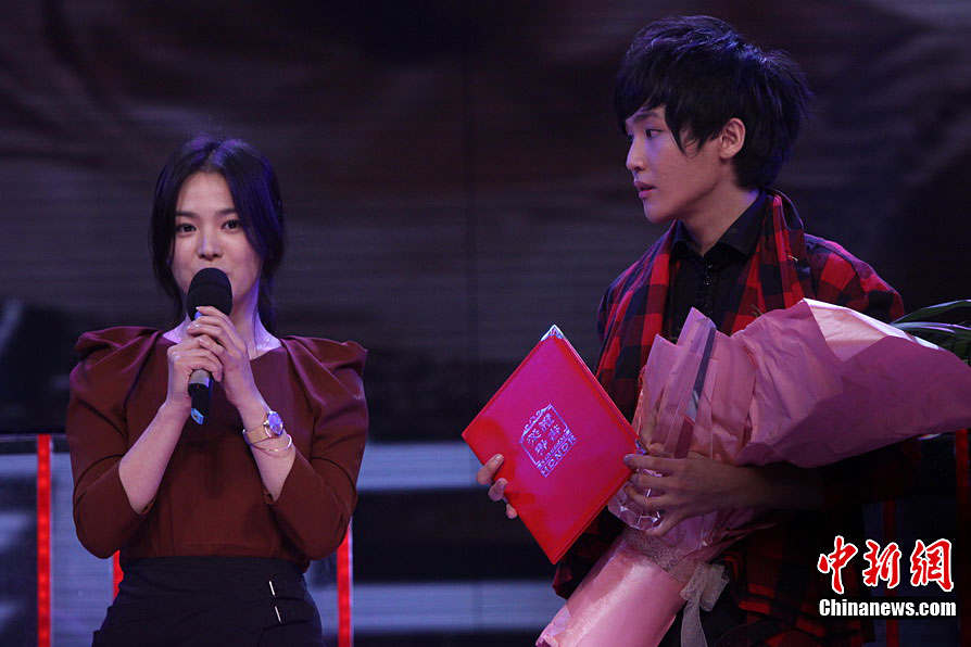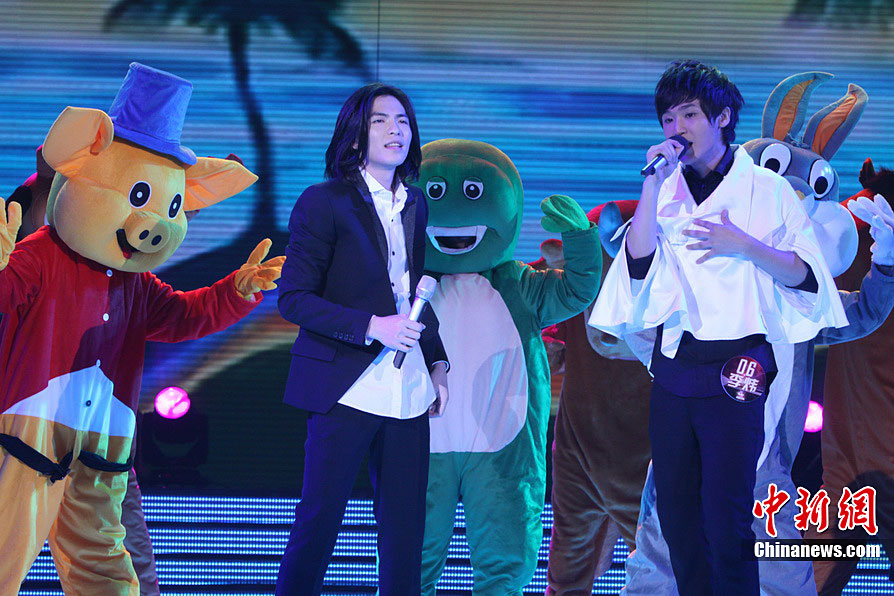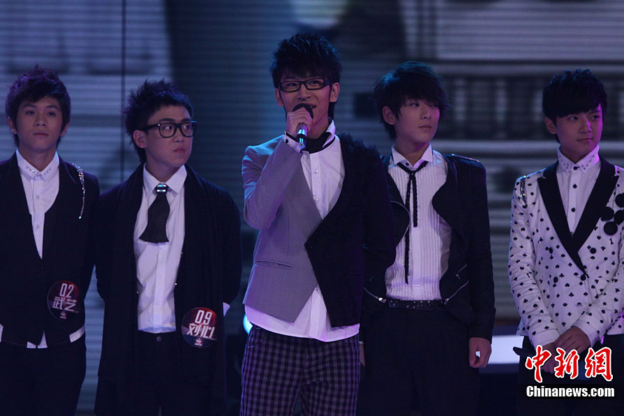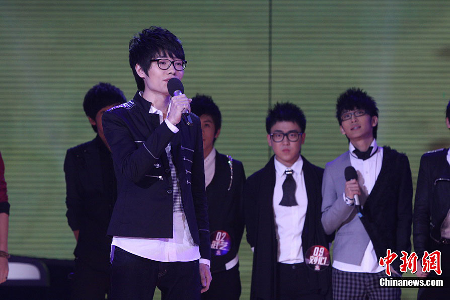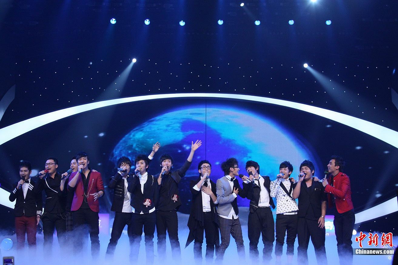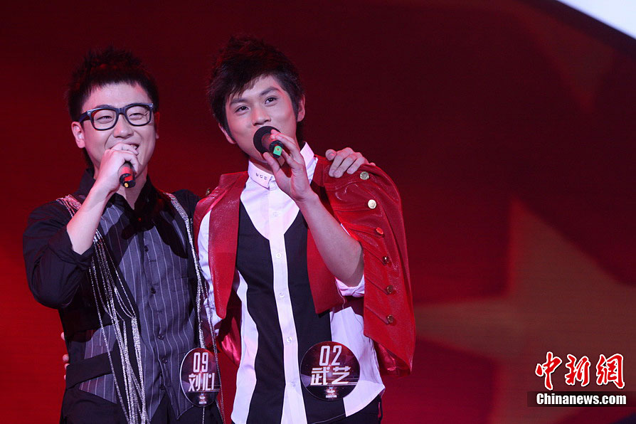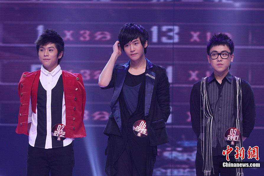 2010年“快樂(lè)男聲”9月11日凌晨正式落幕,在近5個(gè)小時(shí)的激烈比拼中,來(lái)自廣州唱區(qū)的“實(shí)力偶像”李煒終憑不凡唱功奪冠,一直以原創(chuàng)見長(zhǎng)的劉心位列亞軍,人氣王武藝雖然進(jìn)步迅猛備受好評(píng),但在前三輪比賽后就以大比分不敵劉心而成為第三名。圖為快男三強(qiáng)。湖南衛(wèi)視 攝