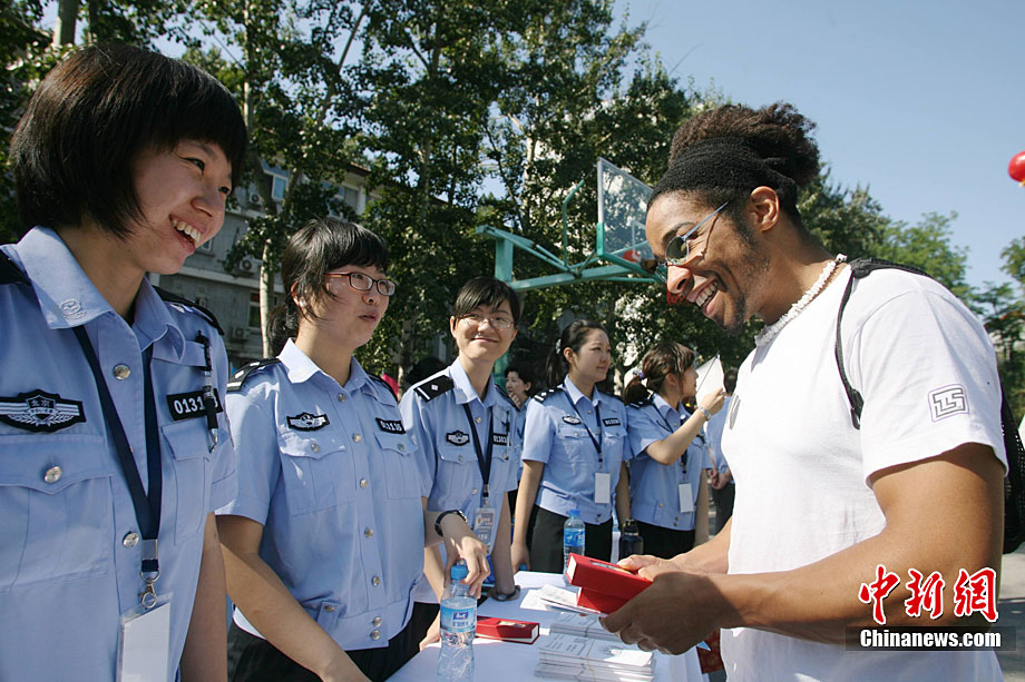 9月11日,北京語言大學(xué)一留學(xué)生在北京特警的講解下試用新型警用槍支。當(dāng)日,北京市公安局在北京語言大學(xué)舉辦“平安北京進(jìn)校園”主題活動(dòng)。民警通過面對(duì)面的交流為外國留學(xué)生提供咨詢服務(wù),用英、德、西、日、韓5種語言,解答外國留學(xué)生在京居留、學(xué)習(xí)生活方面的各種問題,致力于提高外國留學(xué)生的安全感和滿意度。中新社發(fā) 蘇丹 攝