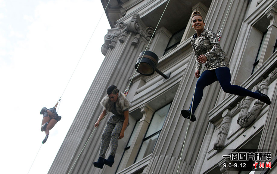 當(dāng)?shù)貢r間9月6日,一批模特在英國倫敦掛上鋼絲,在大樓外上演了一場精險刺激的空中時裝秀。這場時裝秀是為了宣傳即將到來的英國時裝周而特別設(shè)計的。
