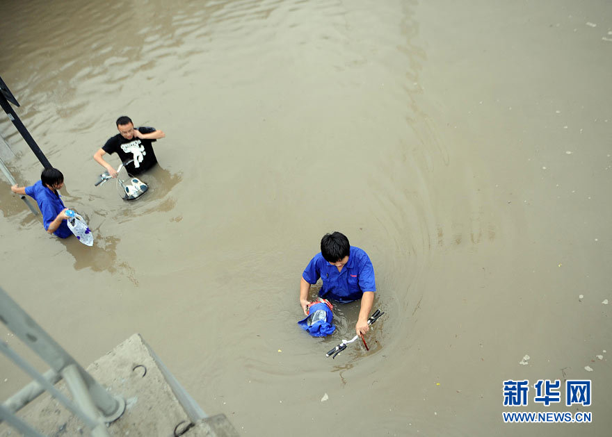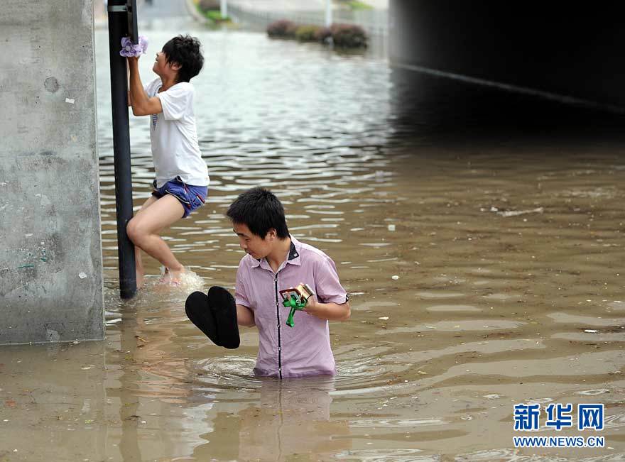 9月11日下午,杭州市濱江區(qū)火炬大道鐵路涵洞內(nèi)積水嚴(yán)重,行人涉水而行。受“莫蘭蒂”影響,自9月11日凌晨4時(shí)起,杭州市濱江區(qū)突降暴雨,多處地段出現(xiàn)積水,據(jù)氣象部門測(cè)算,該區(qū)內(nèi)最大降雨量超過(guò)230毫米,為歷史罕見。胡元勇 攝 圖片來(lái)源:新華網(wǎng)